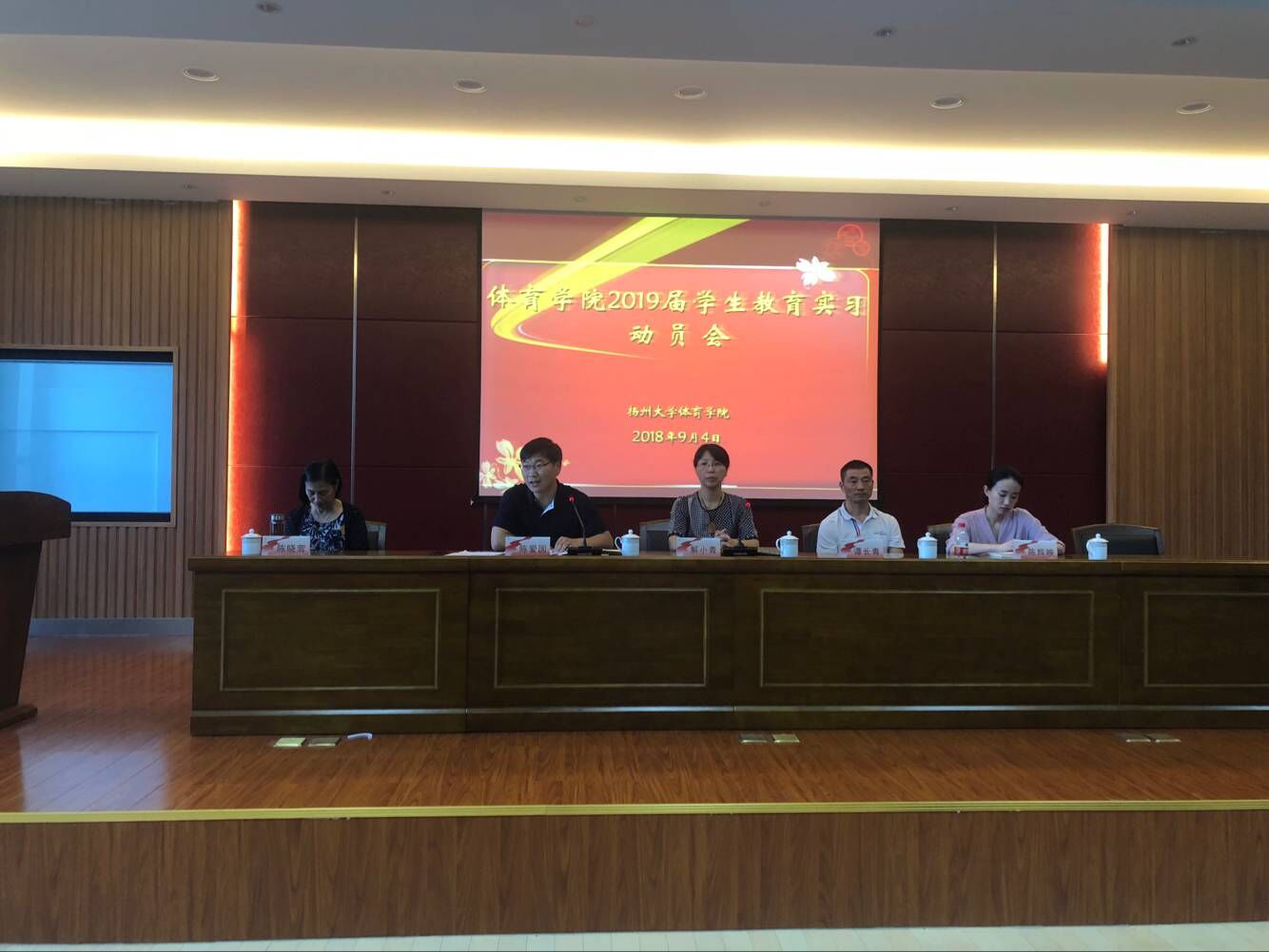 2018年9月4日下午,我院在文体馆WN302举行2019届学生教育实习动员会,体育学院副院长陈爱国、党委副书记解小青、专业部主任谭长青、陈晓莺、陈辉映出席了本次会议。本次大会由副院长陈爱国教授主持,全体实习带队教师、体育学院15级毕业生参加了本次动员大会。