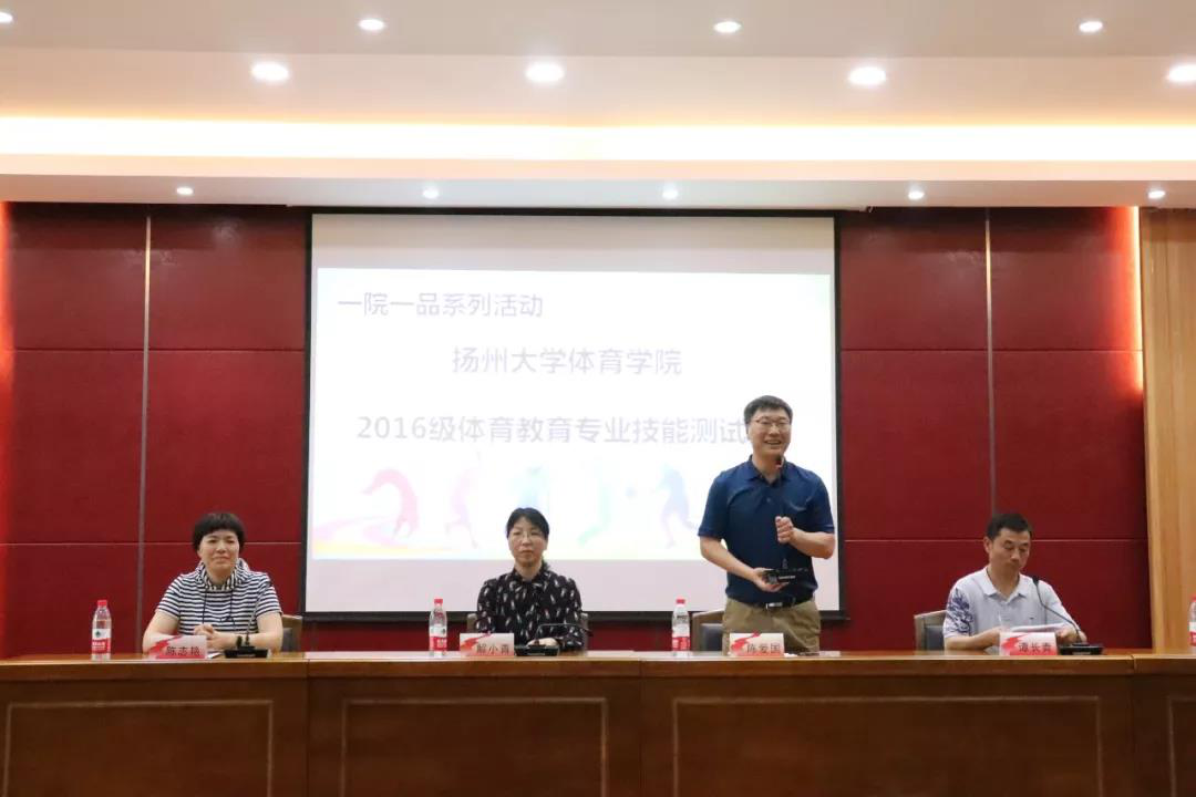 5月31日上午,我院在扬子津文体馆WN302举行2016级体育教育专业技能测试大赛。院长颜军老师,党委常务副书记李怀军老师、党委副书记解小青老师、副院长彭春生老师、副院长傅建老师、副院长陈爱国老师出席大赛开幕式,全体体育教育专业的学生也参加了此次活动。体育教育专业部主任谭长青老师主持此次开幕式。