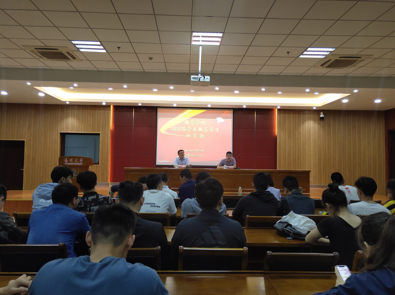 9月3日下午4:30,体育学院2020届学生教育实习动员大会在文体馆WN302会议室举行。参加此次会议的有体育学院党委徐玉副书记,体育学院王秋林副院长,院体育教育专业部谭长青主任、院社会体育专业部陈辉映主任、院民族传统体育专业部陈晓莺主任,16级各班级班主任,体育专业部教师,体育学院综合办公室、团委的相关老师以及全体16级学生。