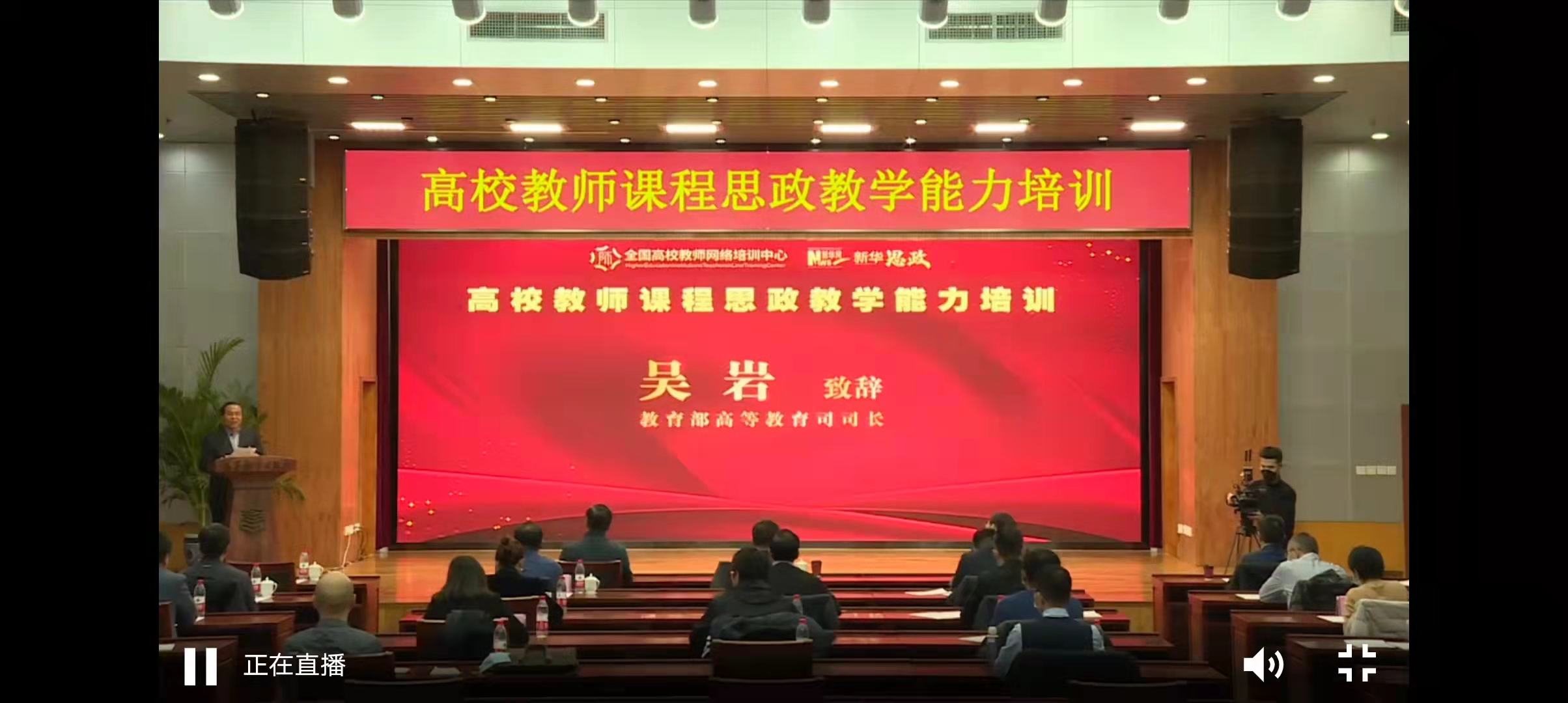 此次培训由教育部高等教育司指导,全国高校教师网络培训中心与新华网联合举办,以线上形式开展。培训会上高等教育司吴岩司长及相关高校领导专家作了13场报告,旨在全面落实立德树人根本任务,着力提升高校教师课程思政教学能力,努力培养广大高校教师成为学生为学、为事、为人示范的“大先生”。