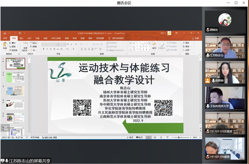 9月3日,学院邀请了扬州市特级教师,扬州市学校体育工作先进个人,扬州市十佳最美教师,扬州大学体育学院硕士研究生指导教师,扬州市直体育教研站站长,扬州市中学体育名师工作室领衔人卢晓鹏老师作《体育教学设计的编写与案例分析》以及扬州大学体育硕士研究生导师,怀化学院体育学院特聘教授,南京体育学院体育硕士研究生导师,苏州大学体育硕士研究生导师,华中师范大学体育硕士研究生导师,兴义民族师范学院体育学院特聘教授,云南师范大学体育硕士研究生导师陈志山教授作《运动技术与体能练习融合教学设计》的线上讲座,本次讲座由体育学院副院长王秋林老师主持,体育教育专业部主任陈辉映老师及2023届全毕业生聆听了本次讲座。