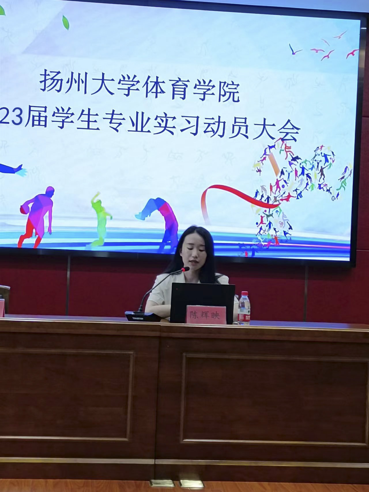 体育教育专业部主任陈辉映老师详细的解读了实习所需要上交的材料、实习管理条例等内容,对各位实习生提出了具体的实习要求。她指出实习是大学三年来所学知识的实践运用,也是今后就业的重要环节。每个同学都应该充分重视两个月的实践学习,上好每一节体育课。重点提出每个同学要严格遵守教师的职业道德规范,端正态度,注意自己一言一行并在实习工作中磨练自己,提升职业使命感,使自己有一个质的飞越。