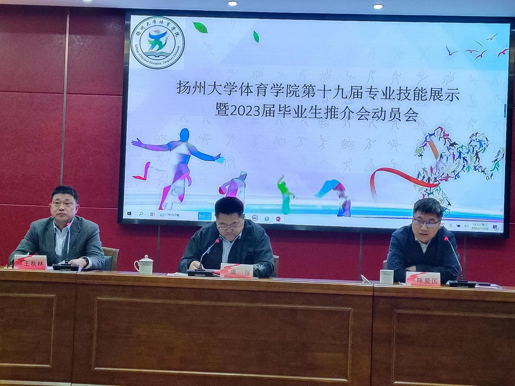11月16日下午,体育学院2023届毕业生技能展示专项工作动员会在文体馆WN302会议室召开。参加此次会议的有我院党委书记虞强、院长陈爱国、副院长王秋林、体育教育专业部主任陈辉映、社会体育专业部主任毛志晨、民族传统体育专业部主任徐贵华、所有专项老师以及毕业班班主任。会议由王秋林副院长主持。