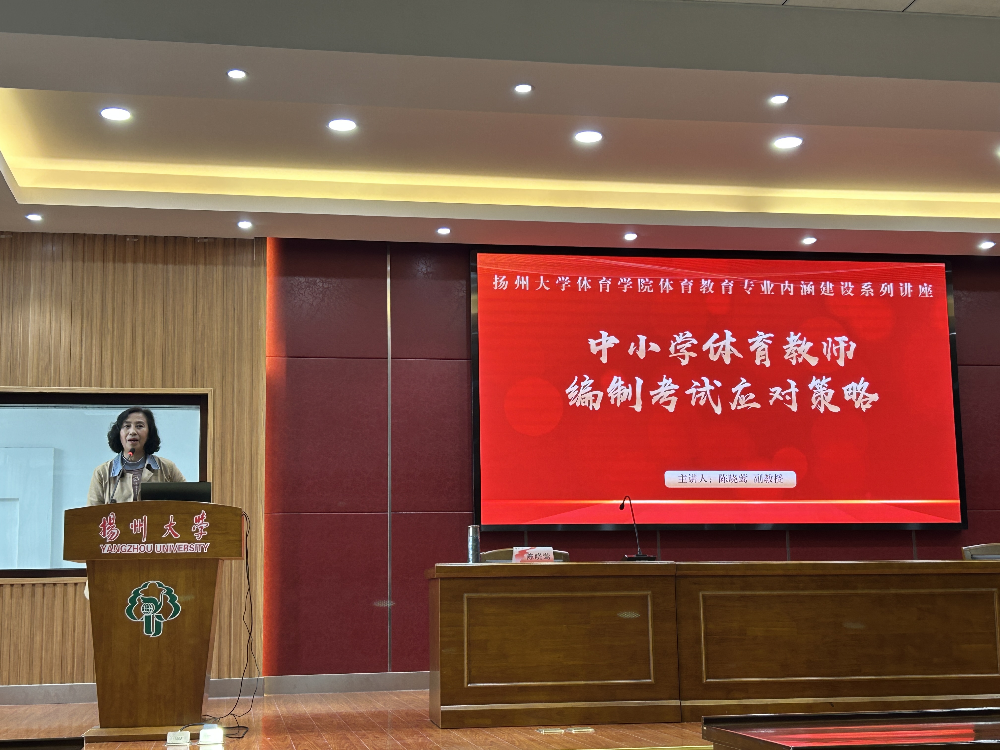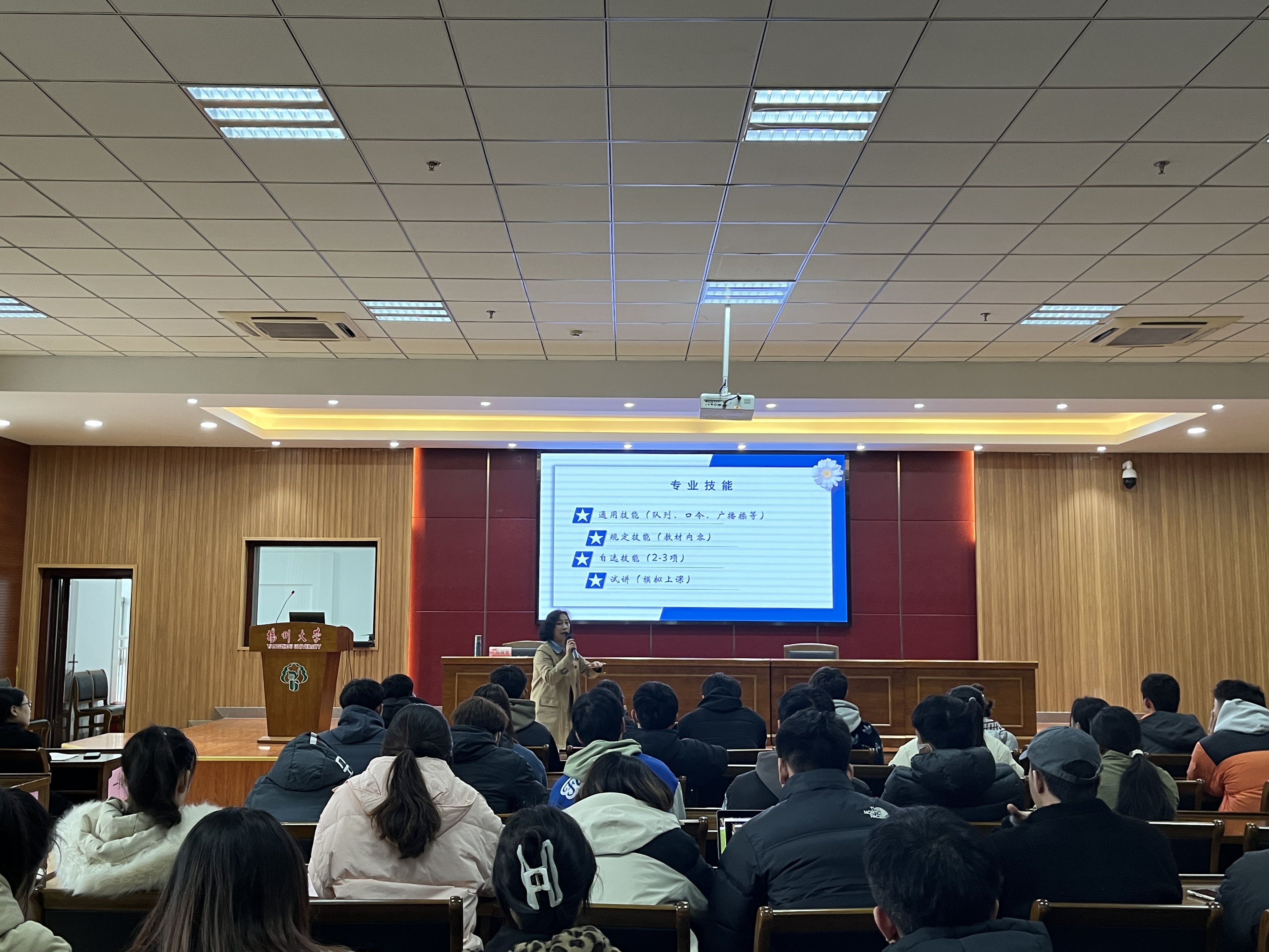 为近一步提高我院人才培养质量,夯实师范生驾驭课堂能力,打造体育学院教学特色,提高我院学生专业技能水平,增强我院毕业生教育教学能力,我院于3月18日在文体馆WN302报告厅开展了学生《扬州大学体育学院体育教育专业内涵建设讲座》系列活动,学院所有大三、大四的学生参加了本次培训。武术与民族传统体育专业负责人陈晓莺老师作题为《中小学体育教师编制考试应对策略》的培训。