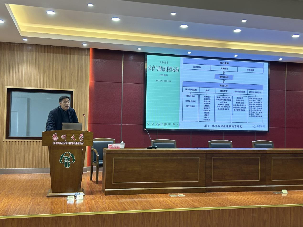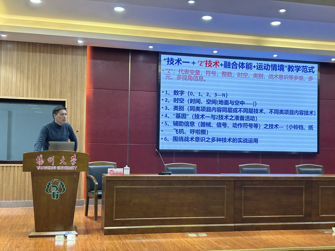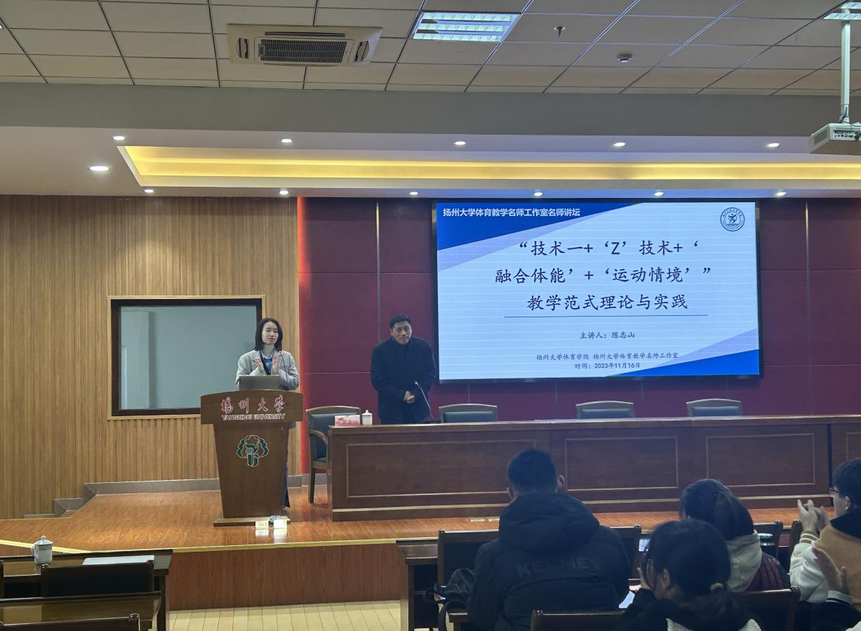 11月16日下午,学院特邀江苏省南京市金陵中学河西分校高级教师、南京市建邺区优秀教育工作者、扬州大学体育硕士研究生导师、校友陈志山老师为2023级体育教育专业学生作题为《“技术一+‘Z’技术+‘融合体能’+‘运动情境’”教学范式理论与实践》的体育教育指导讲座,本次讲座是由体育教育专业部主任陈辉映老师主持,体育学院2023级体育教育专业学生及部分研究生参加此次讲座。