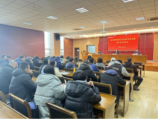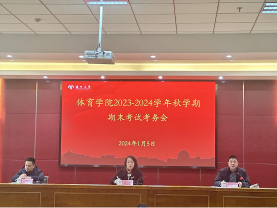 为进一步加强考试管理工作,严肃考场纪律,端正考风和学风,确保期末考试顺利进行,2024年1月5日,我院在文体馆WN302报告厅召开了2023-2024学前秋学期期末考试考务会。本次会议由体育学院体育副院长王秋林主持,体育学院院长傅建、副院长张银行及全体有监考任务的教师参加了本次会议。
