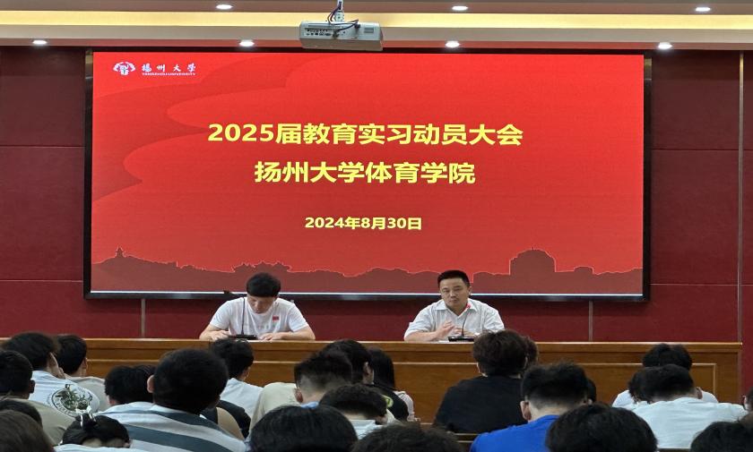 8月30日上午,在体育学院WN302会议室召开了教育实习动员大会。张银行副院长、院办施东群老师以及2025届全体学生参加了本次会议,会议由教学院长助理刘超老师主持。会上,张银行副院长详细介绍了实习的具体安排和内容,并从理论与实践的深度融合、职业素养的提升、职业规划的明确三个方面阐述了教育实习的重要意义。他倡导大家恪守实习纪律,严格服从实习学校管理,秉持主动求知的态度,将每一次实践都视为自我超越的宝贵机会。最后,他特别强调了实习安全的重要性,并鼓励大家要倍加珍惜难得的实习经历,以虚怀若谷的心态向每一位师长求教,勇于将所学知识付诸实践,以行动诠释教育者的责任与担当。