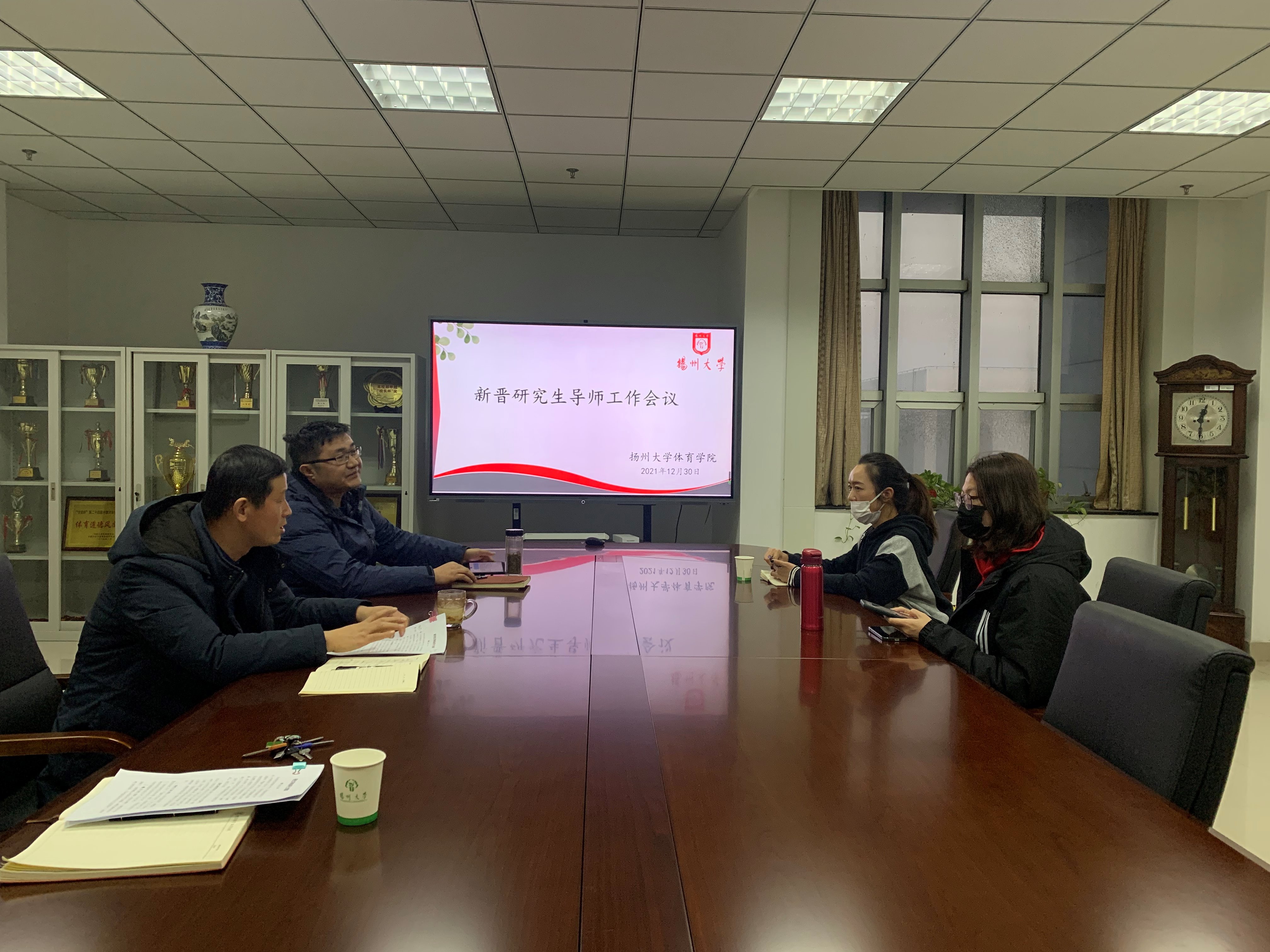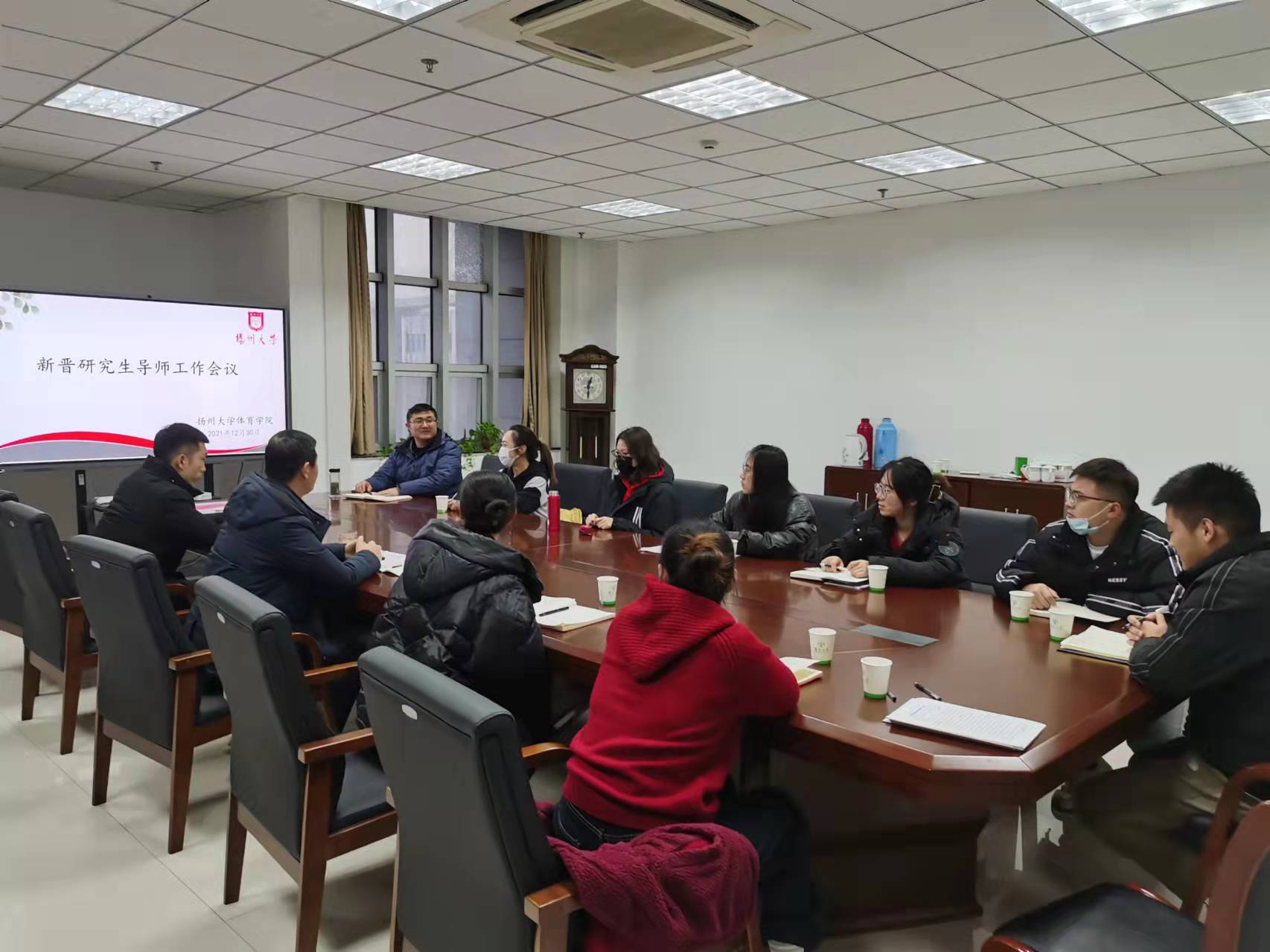 12月30日下午,体育学院新晋研究生导师工作会议在文体馆E503会议室举行,学院党委书记顾建国、副书记徐玉、研究生教务员和全体新晋研究生生导师及部分研究生代表参加了会议。