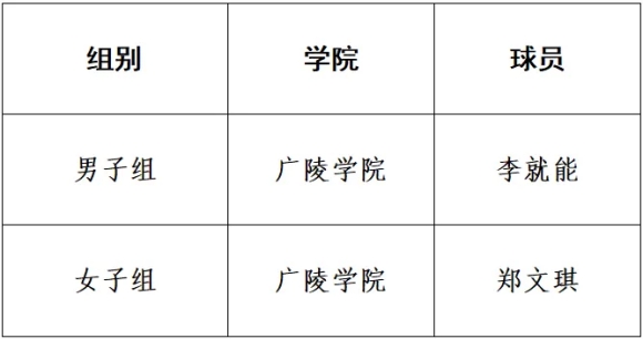 男子组、女子组决赛最有价值球员