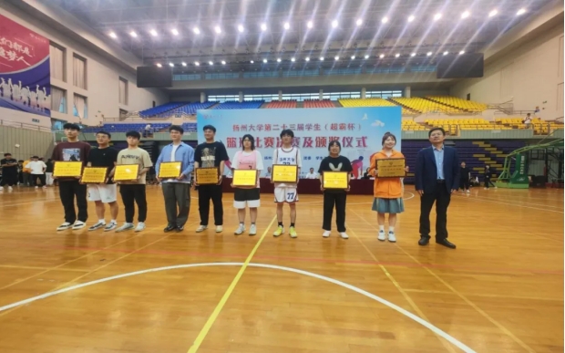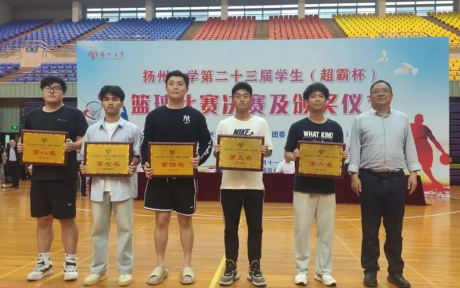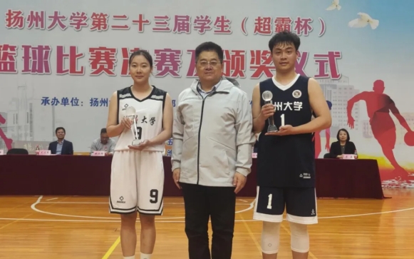 5月11日,扬州大学第二十三届学生“超霸杯”篮球赛决赛在荷花池校区体育馆举行,广陵学院和植物保护学院代表队角逐男子组冠亚军,广陵学院和生物科学与技术学院代表队角逐女子组冠亚军。副校长王承堂,校长办公室主任龚俊杰,校保卫部(处)部(处)长姚永明,校教务处副处长俞福丽,校学生工作(部)处副(部)处长毛连军,校团委副书记王敏,体育学院(体工部)党委书记虞强,体育学院(体工部)院长(主任)傅建观看决赛并出席颁奖仪式,体育学院副院长王秋林主持颁奖仪式。
