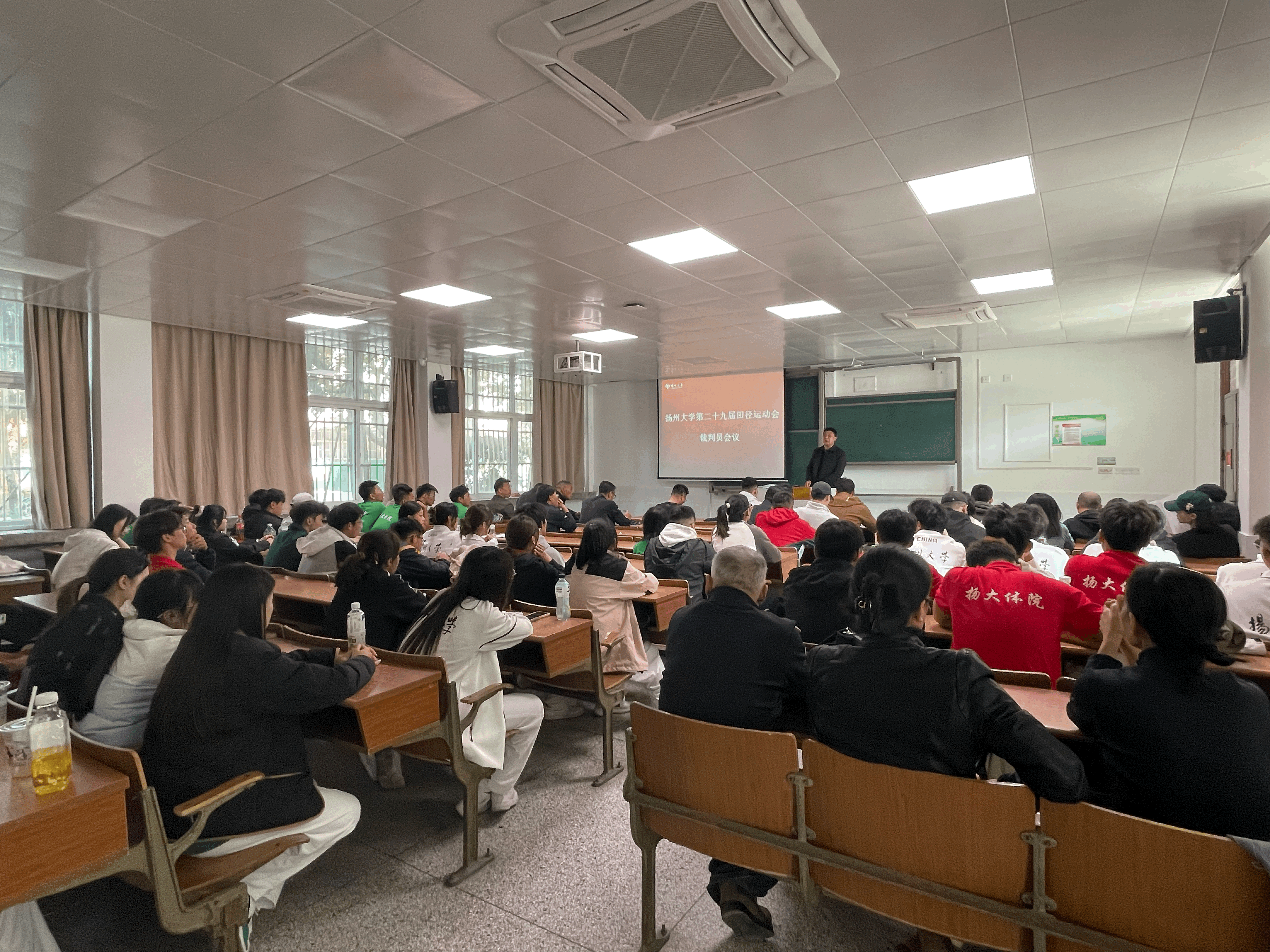 10月24 今日,在扬州大学在文汇路校区23号楼120教室召开了扬州大学第二十九届田径运动会裁判员会议。会议旨在对即将举行的田径运动会进行全面部署,确保赛事公正、公平、顺利进行。