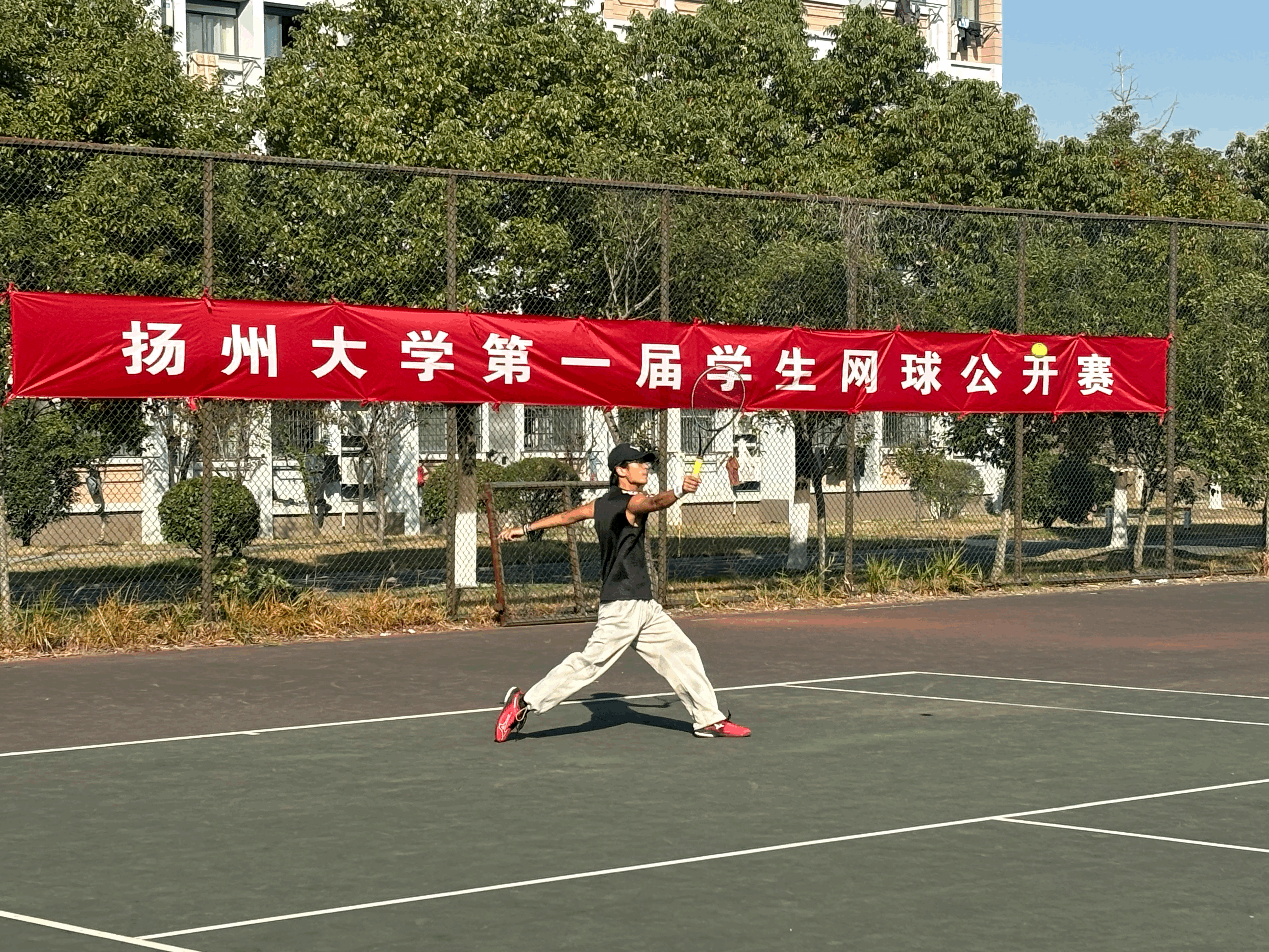 扬州大学举行第一届学生网球公开赛 竞技激烈 选手风采尽显
