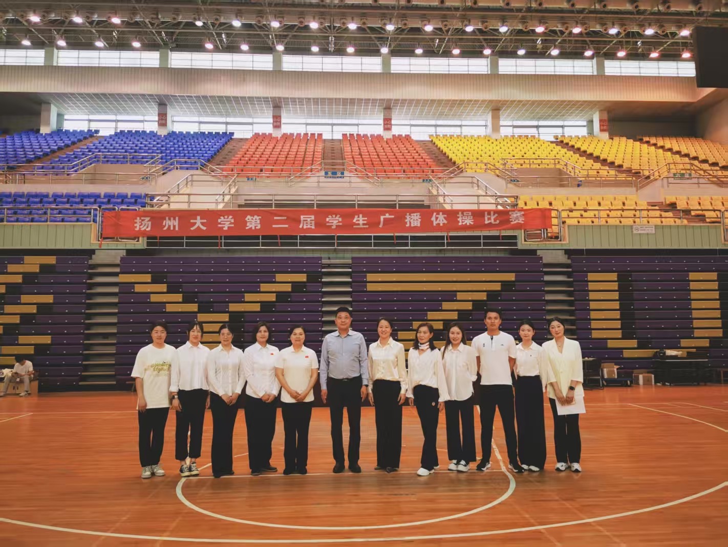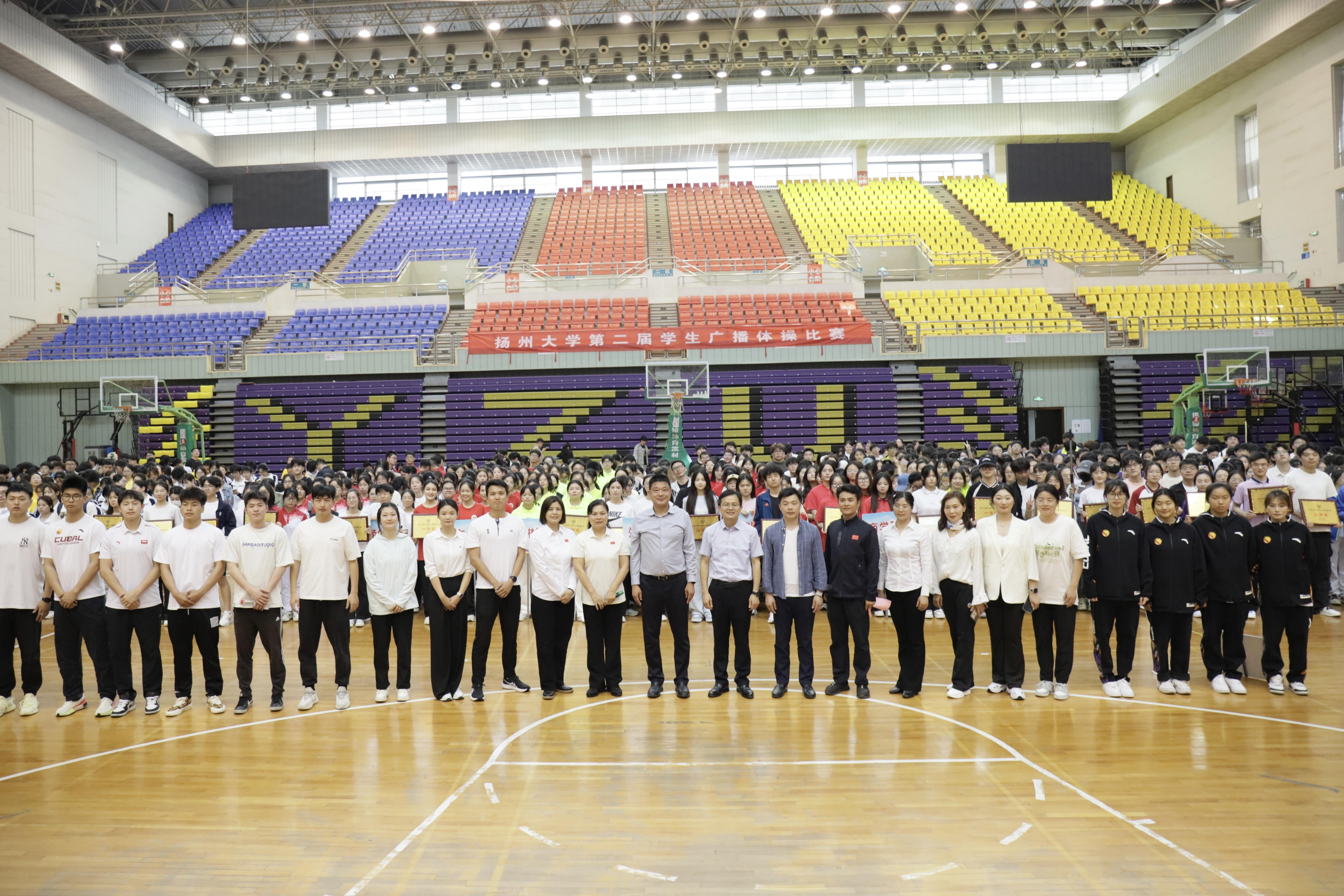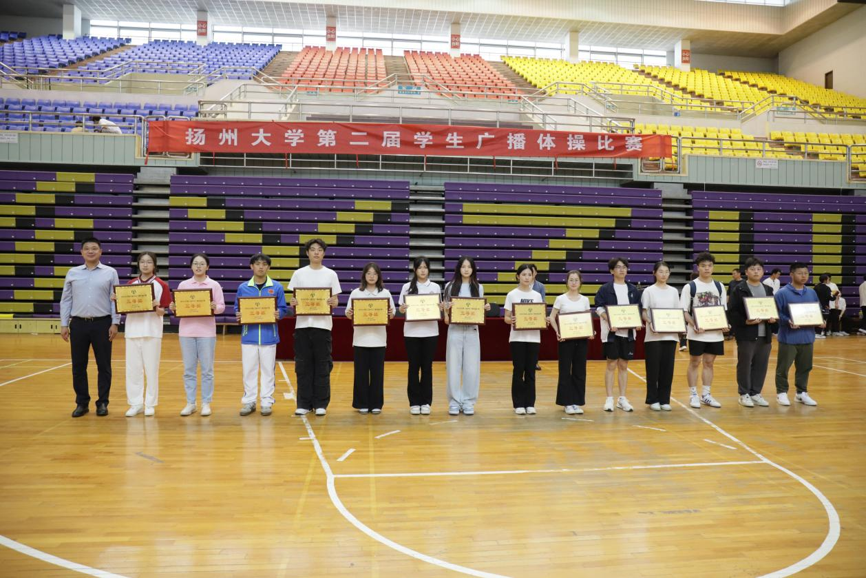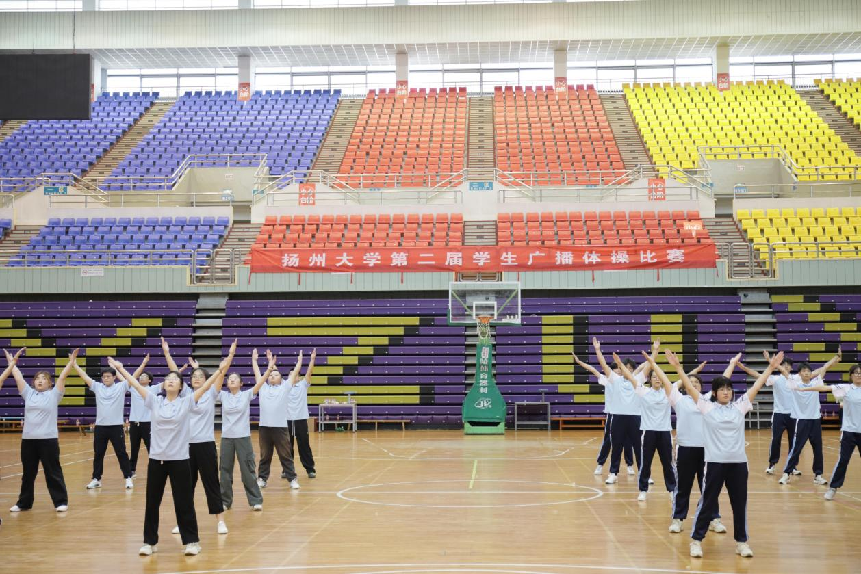 为积极响应《关于全面加强和改进新时代学校体育工作的意见》要求,以"一校多品"的创新发展模式,激发学生运动热情,以建设学生运动文化为目的,我校体育工作部于5月7日在荷花池校区篮球馆举办了扬州大学第二届学生广播体操比赛。