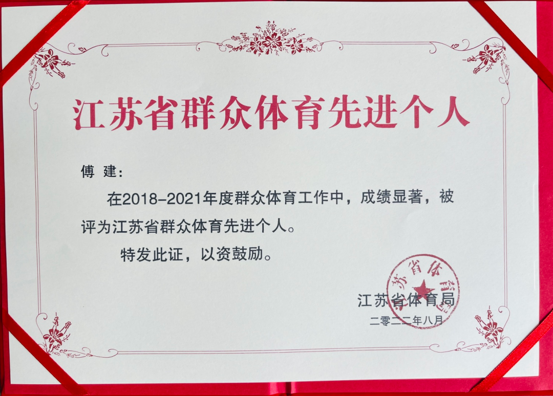 9月4日,江苏省第二十届运动会在泰州圆满闭幕,我校在江苏省第二十届运动会高校部中囊括本届省运会设置的所有四个奖项:“优秀组织奖”、“突出贡献奖”、“体育道德风尚奖”代表团、“最佳赛区奖”等奖项。我院荣获江苏省第六届体育科学大会暨第二十届省运会科学报告会“优秀组织奖”。傅建教授荣获江苏省群众体育先进个人。