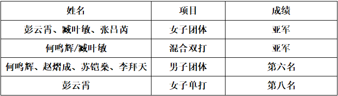 赛场上,队员们不惧困难,迎难而上;教练员及时调整战术,不断鼓励队员。在气温骤降、阴雨连绵的情况下,队员们克服寒冷,互相帮助,最终发挥出了团队最高水平。女子团体小组赛中,面对大比分1:1,决胜盘双打0:3落后的态势,彭云霄和臧叶敏绝地反击,连追4局晋级下一轮;男子团体赛中,队长何鸣辉带领队伍鏖战至深夜,决胜盘抢5最后一分绝杀江苏科技大学挺进男团八强;女子单打16进8比赛中,彭云霄面对团体赛战胜过的南理工对手的临时转换战术,持续挑高球进攻,临危不惧、意志坚定,鏖战3.5小时,坚韧挺进八强,但最终因伤病遗憾退赛。队员们全力拼搏到最后一刻的表现充分展现了扬大学子坚韧不拔的奋进精神!