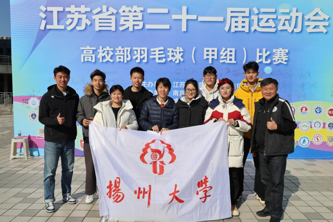 扬州大学羽毛球队由院长傅建担任领队,李仪、陶晨两位老师担任教练员,带领体育学院的8名同学薛崴月(体博2401)、王婷(体研2301)、孙语轩(体教2201)、张钰婕(体教2301)、丁梓轩(体教2201)、朱长俊(体教2301)、吉奕丁(体教2401)、李德政(动医2301)参加本次比赛。