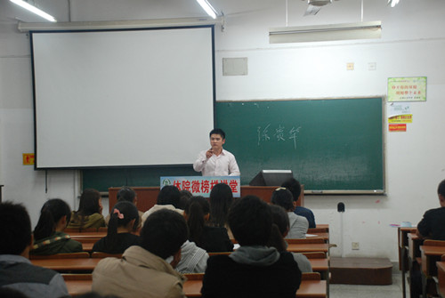 10月9日18:30扬州大学文汇路校区23号楼113举办了一场以“走听转办”为主题的微讲堂活动,由院团委书记陈志艳老师亲自主持。其目的是为响应党的号召---走群众路线,实施“走基层,听民风,转作风,办实事”的基本交流、学习方针。以实际行动深入同学生活中,为同学们解决学习、生活上的疑难困惑。因此陈志艳老师特意请来两位学长,一位是07届民传毕业生,现就读于上海体育学院研究生的徐贵华;另一位是就读于扬州大学社体1001的梁宇。两位分别从大学的学习生活和与社会生活两方面介绍了自己的经历,并提出了对社体民传学弟学妹们的期望。