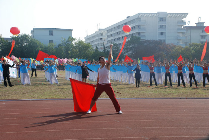 2013年10月25日,扬州大学第十八届运动会在文汇路校区田径场隆重召开。鼓乐喧天,奏响前进的号角,近400名体院学子用他们火热的激情为全校师生献上了主题为《超越梦想,再创辉煌》的开幕式表演。