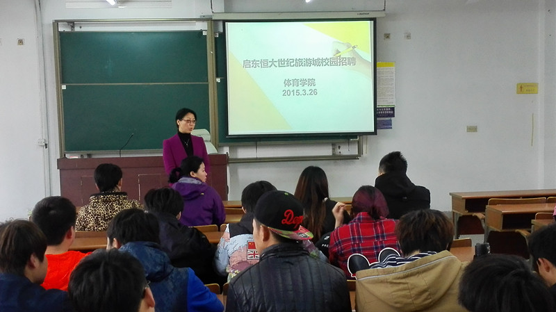 会上,恒大集团酒店管理集团启东世纪旅游城陈志坚总经理介绍了恒大集团的基本情况,恒大集团的酒店部门成立于2007年,集团已经实现开业即将开业16家,客房总计4000多间,经营面积170万平方米,力争在十年达到100家酒店正式运营,启动恒大世纪旅游城将以超5星的标准打造,其游泳馆、健身房、网球场、娱乐中心和儿童中心需要大量的体育专业工作人员。陈经理就薪资待遇、岗前培训、就业前景等细节做了详细的介绍。