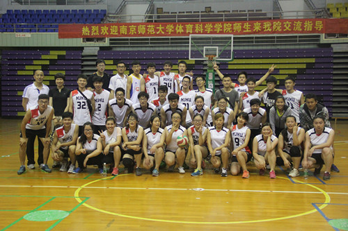 6月10日,南京师范大学体育学院副院长蒋静华,阿英嘎、韩波、卢文远老师携篮球、排球专项班的同学到我院开展教学实践活动。扬州大学体育学院党委副书记解小青,副院长李宁川,篮球和排球专项班师生代表参加活动。