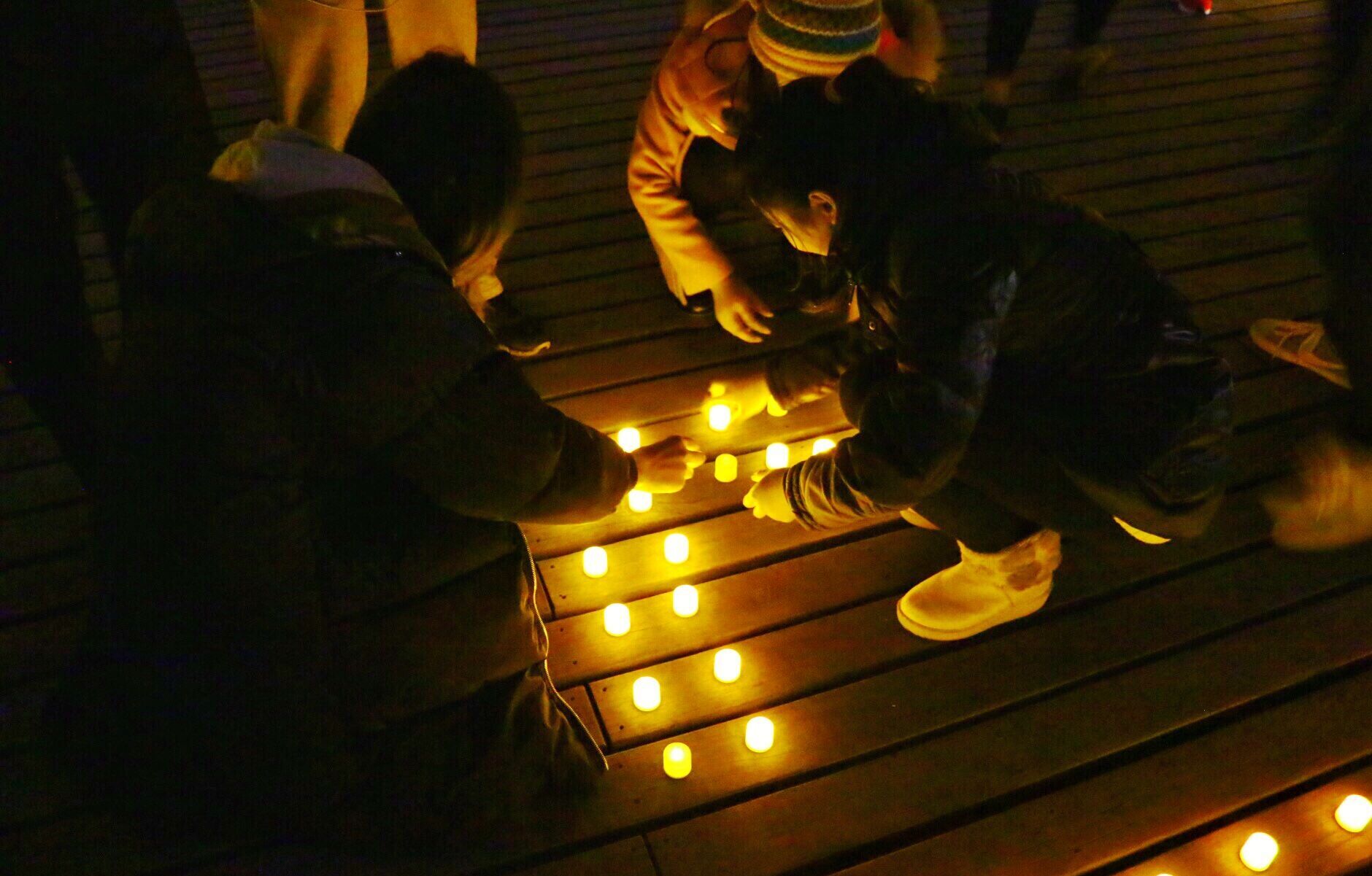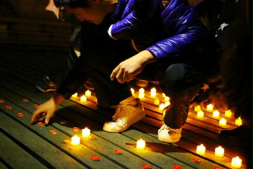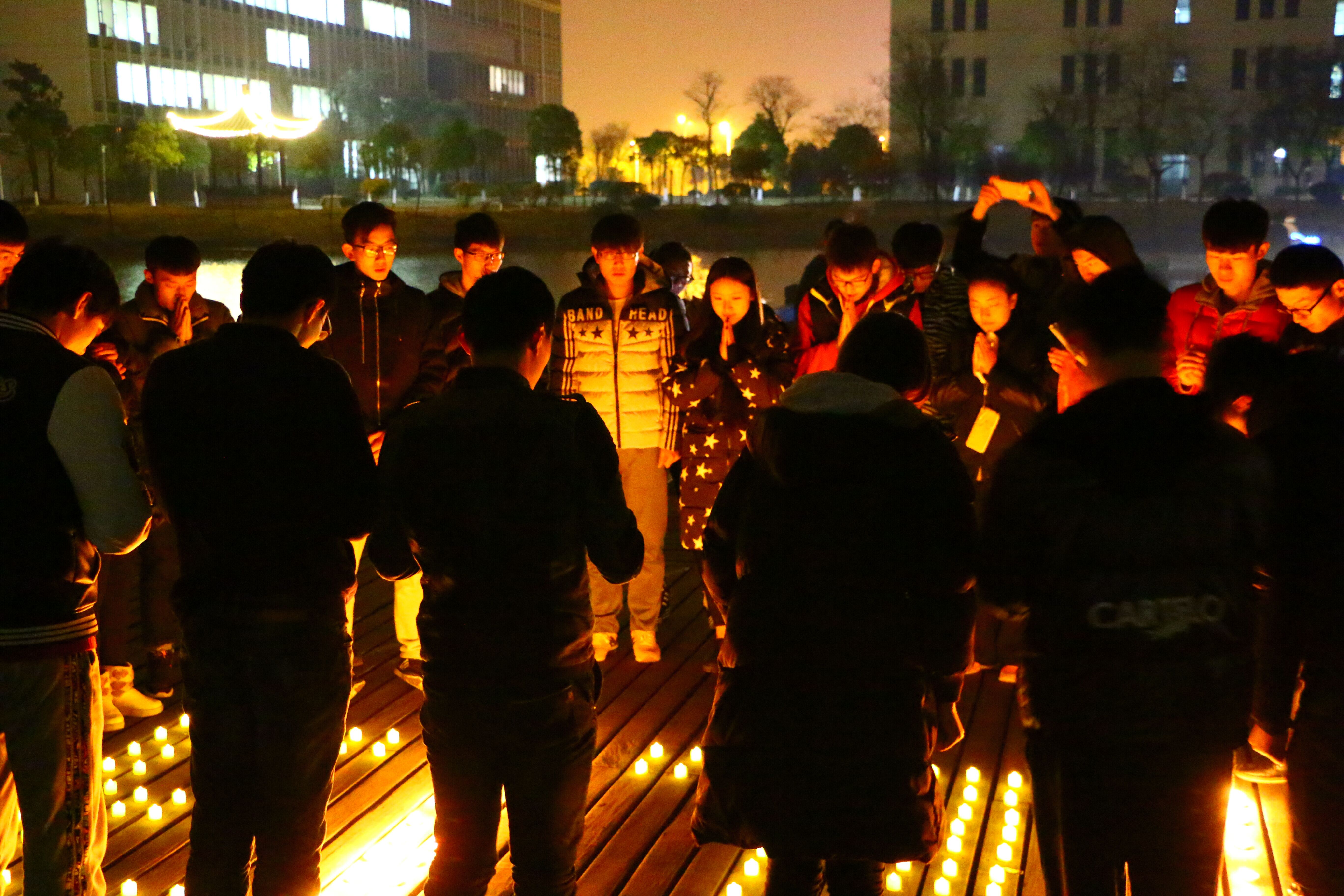 本次纪念活动在扬子津校区昭文馆旁的明月桥举行。同学们采用烛光祭的形式,通过摆放蜡烛的形式,排出“12.13”的字样。