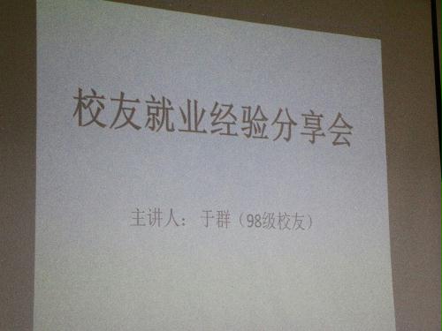 2016年3月30日下午,体育学院98级校友于群受邀回到母校在扬子津校区文津楼E206与2015级全体本科生、研究生一起分享自己的学习工作心得。