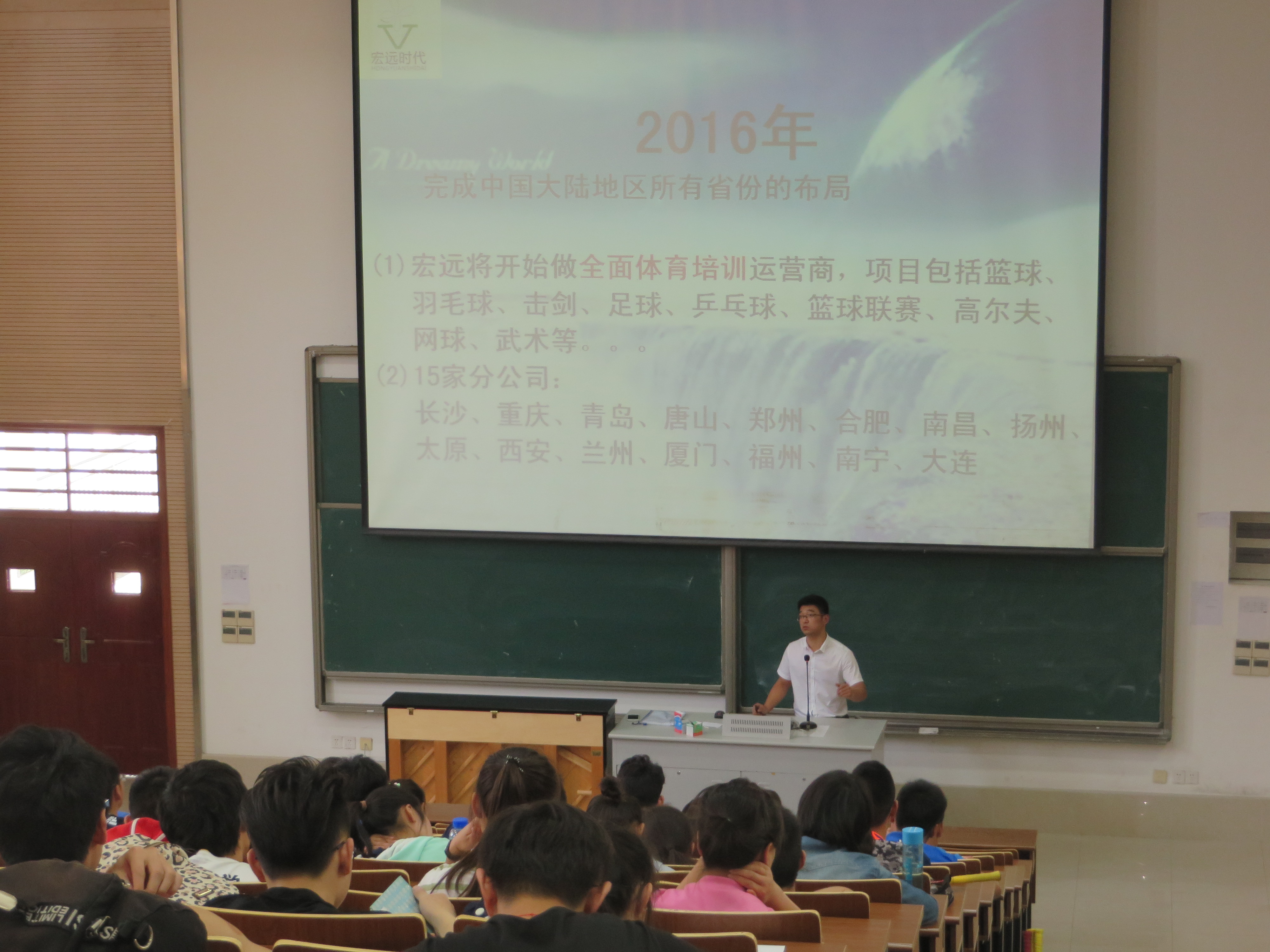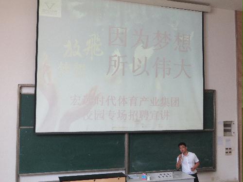 体育学院2017届毕业生首场校园招聘宣讲会于2016年5月4日上午10点在扬州大学扬子津校区文津楼E204拉开帷幕。本次校园招聘宣讲的企业为全国最大的培训机构之一宏远时代体育发展有限公司,受众群体为2013级全体本科生及部分毕业生。