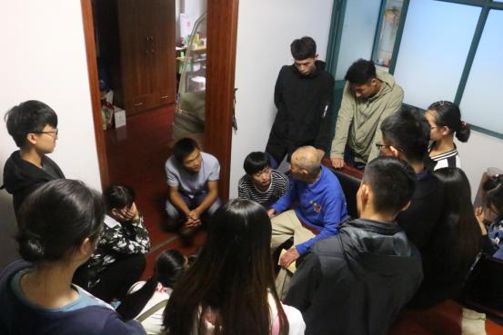 由于侯陆卿老人的方言与普通话的些许区别,再加上年纪问题的有些吐字不清,有些话同学们并不能够完全听懂,但这丝毫不影响大家交流,这是一次心灵的沟通。