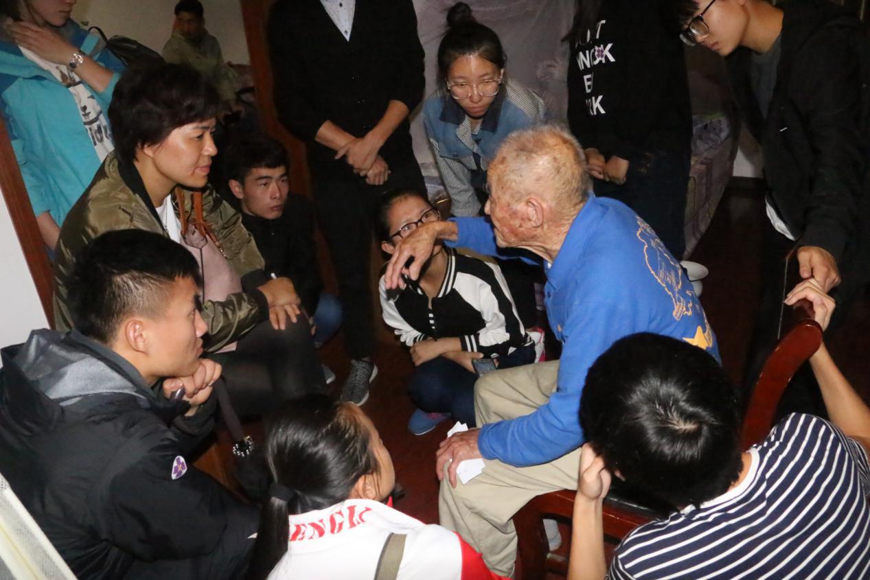 侯陆卿老人在讲述故事的时候,一直紧紧地攥着身边一位同学的手,抓得很紧不肯放开,大概是很久没有人好好陪他说说话聊聊天了,暮年老兵并不需要太多的荣誉,只要更多的陪伴。考虑到老人的身体状况,同学们送他回去休息,可是老人似乎意犹未尽,慢慢感慨了一句“这些历史啊,是讲不完的”。的确,漫漫历史长河,沉淀了太多的故事,但“前事不忘,后事之师”的精神永垂不朽。