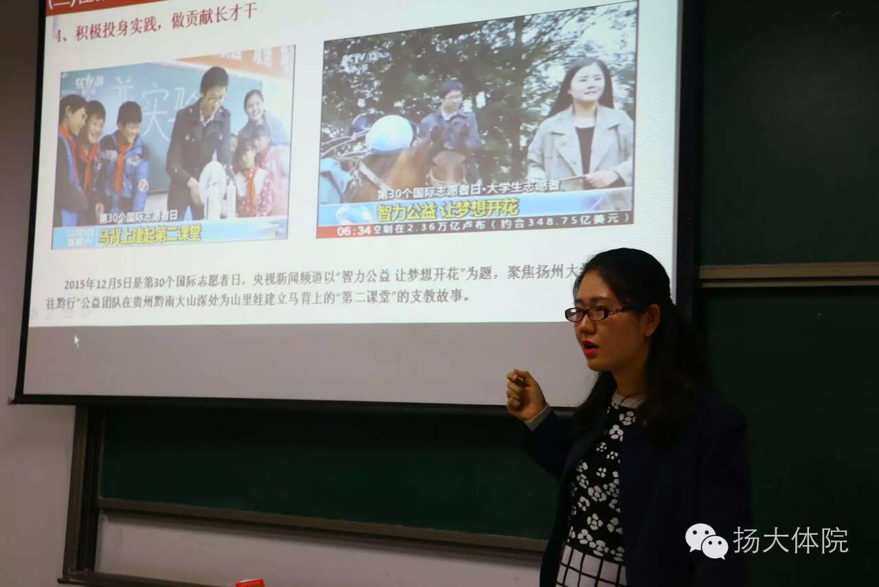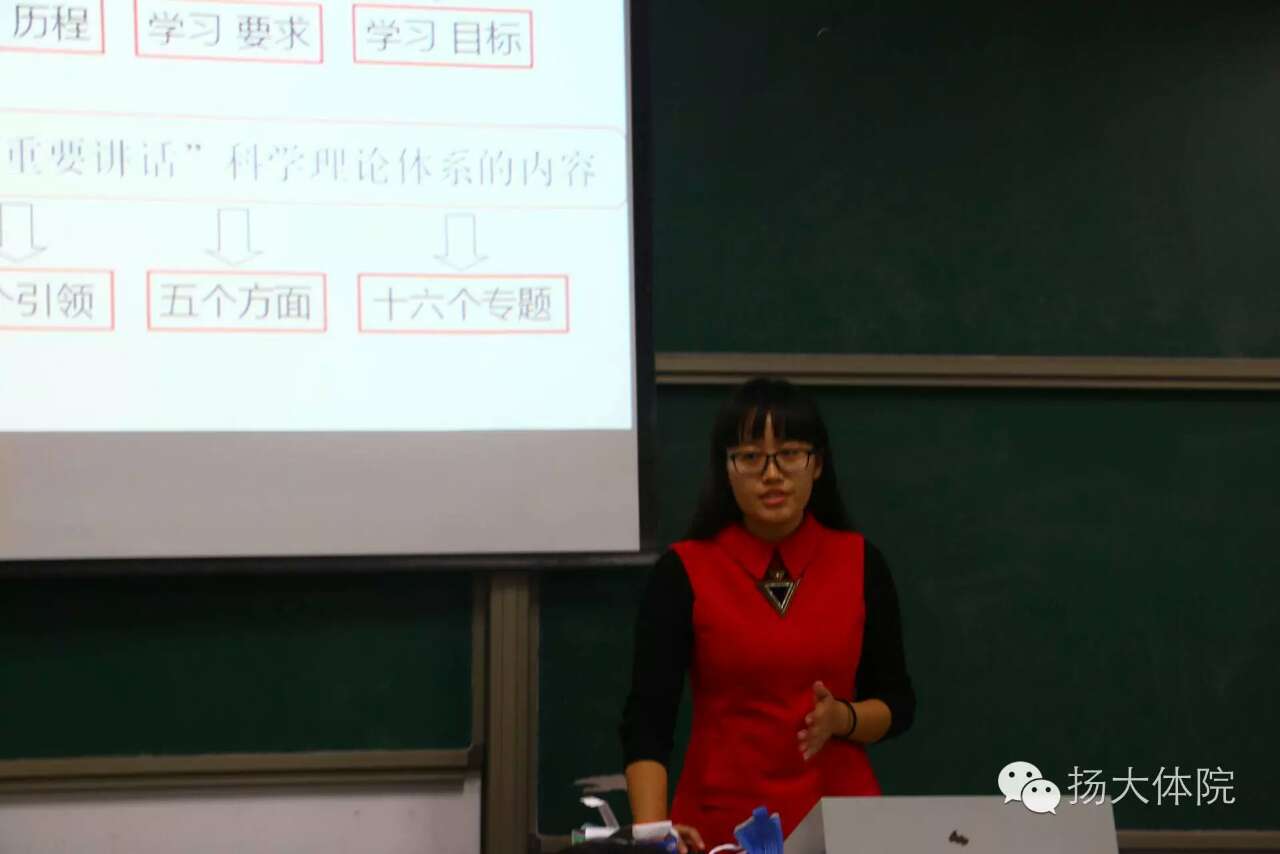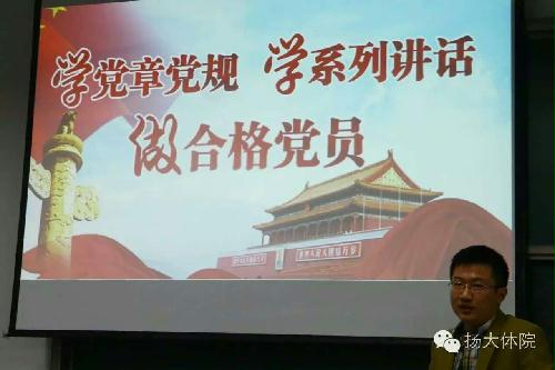 2016年10月17日,由扬州大学党委宣传部、组织部、学工部、研工部、校团委联合主办,扬州大学“两学一做”博硕士生党员宣讲团主讲的《学习党章党规,学系列讲话,做合格党员》课题在文津楼内开展。