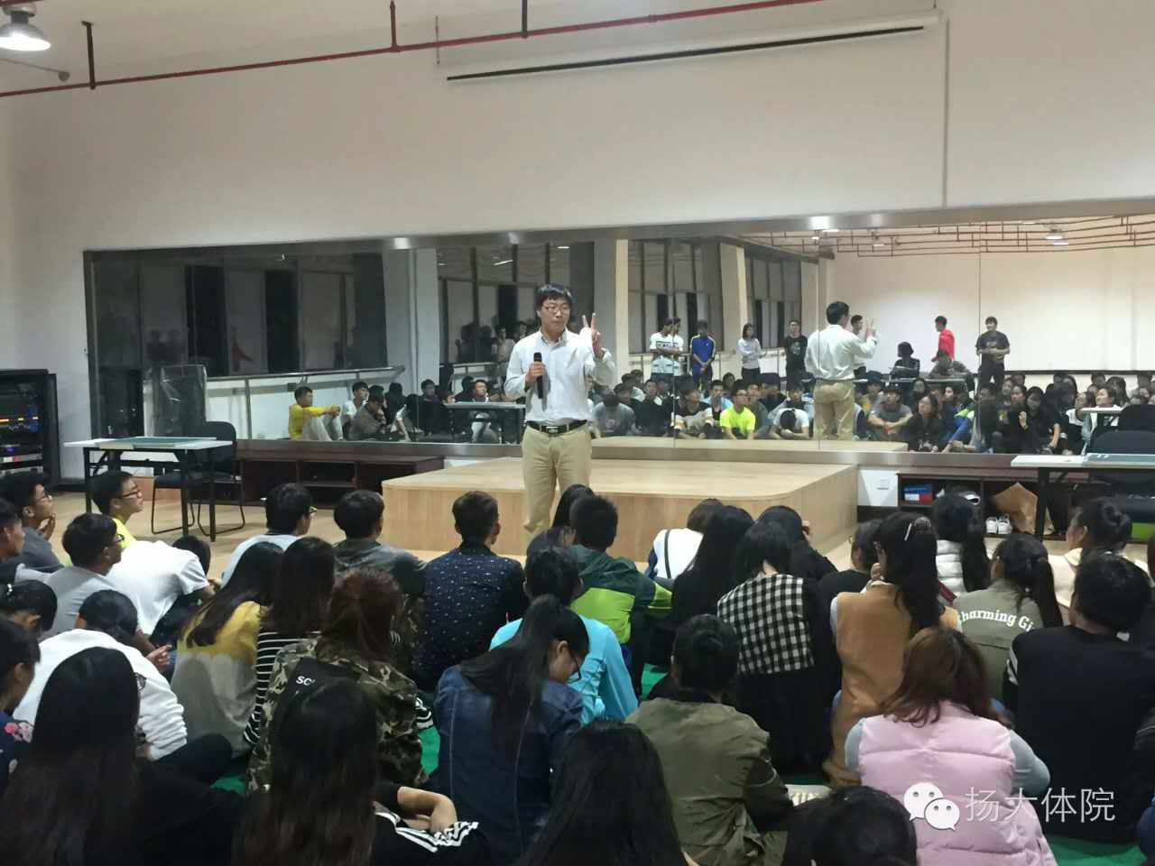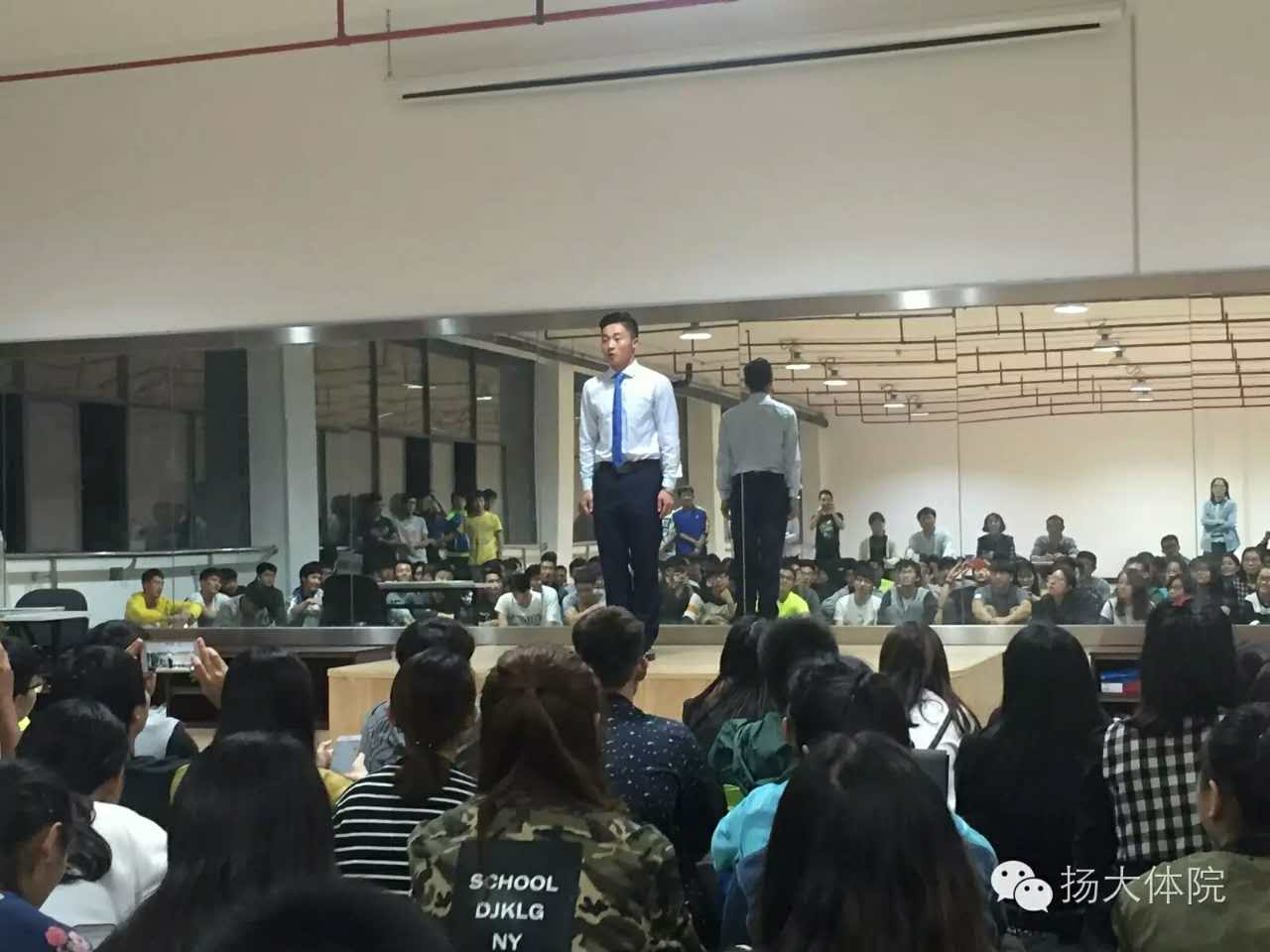 10月21日晚7点,我院师范生基本功模拟展示在在文体馆五楼健美操房WN504教室进行,本次由唐茜和吴建胜两位同学进行的师范生基本功展示,党委解小青副书记、陈爱国副院长等领导老师出席了此次展示,体育学院全体学生观看了此次模拟授课。据悉此次活动也为体育学院备战11月份的江苏省师范生比赛做准备。