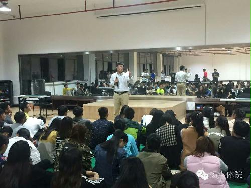 首先,陈爱国副院长向全体出席此次会议的体育教育专业学生进行勉励。他强调了扬州大学体育学院体育教育在全省的地位,扬大体院在过去的江苏省师范生比赛中,一共囊括了11个一等奖中的5个,而学院也将培养学生,塑造学生作为主要培养目标,力求每个学生都能成为合格师范生。