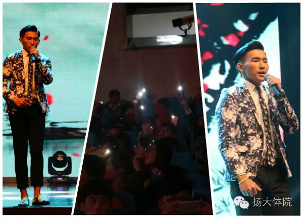 在主持人的开场白后,第一个出场的是轻舞协会带来的开场舞,点燃了大赛的热火,同学们深深的沉浸在大赛的热闹氛围中。一号选手翟宇超和朱景带来歌曲《曾经的你》,这首充满青春芳草般气息的歌曲被选手们演绎的淋漓尽致,动情的青春记忆缓缓地在馆里流淌。接着由二号选手孙恺璐和刘念带来舞蹈《恋爱循环》,来自二次元的精彩表演,可爱的舞蹈动作配上华丽的服装赢得了场下阵阵欢呼。第三个是由陈亚峰和段瑞瑞携手带来的相声表演《智取威虎山》,一字一句有板有眼,令人捧腹,又让人回味。然后就是四号选手代常胜和于飞共同表演的体育舞蹈《遇见》,优美的旋律,缠绵却优雅的步伐相互辉映,呈现给我们的是无以言说的大美。五号选手李响的《如果这都不算爱》,深沉而热烈的音色将这首成熟的男人歌唱的格外具有感染力。六号选手陈怡然和周函宇演奏的二胡合奏《水手》,虽说名为水手,实则是巧妙的歌曲串烧,引来了观众们的阵阵掌声。七号选手冯云婷、杨蓉和赵崇新一同表演了小品《农民工组合》,其中别具特色的方言和大幅度搞笑的动作确实令人忍俊不禁,捧腹大笑。八号选手吴思邈带来的《爱的主打歌》开始时温柔轻缓接着动感奔放,节奏的强烈转变使一首歌曲被重新赋予了生命。九号选手王昊、韩威等同学带来的武术《舞韵》不仅汇集了刀、剑、鞭还有拳法,整个舞台处处生花,每一处都是无与伦比的美丽。十号选手许迪最后出场,为我们带来了压轴的演唱《小镇姑娘》,歌曲的风格清新活泼,通过许迪的改编与创造,歌曲更加干净空灵,场下的观众们不由得挥舞起手中的闪光灯,与歌声一同摇摆。,为大赛画上了一个圆满的句号。