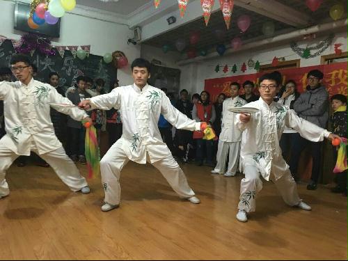 节目表演将尽,由体院社联主席团,以黄志宇同学为首的武术专项的学长学姐们,更是为我们表演了柔力球,太极,套路等中国武术的精髓,赢得在场老师、同学声声喝彩。