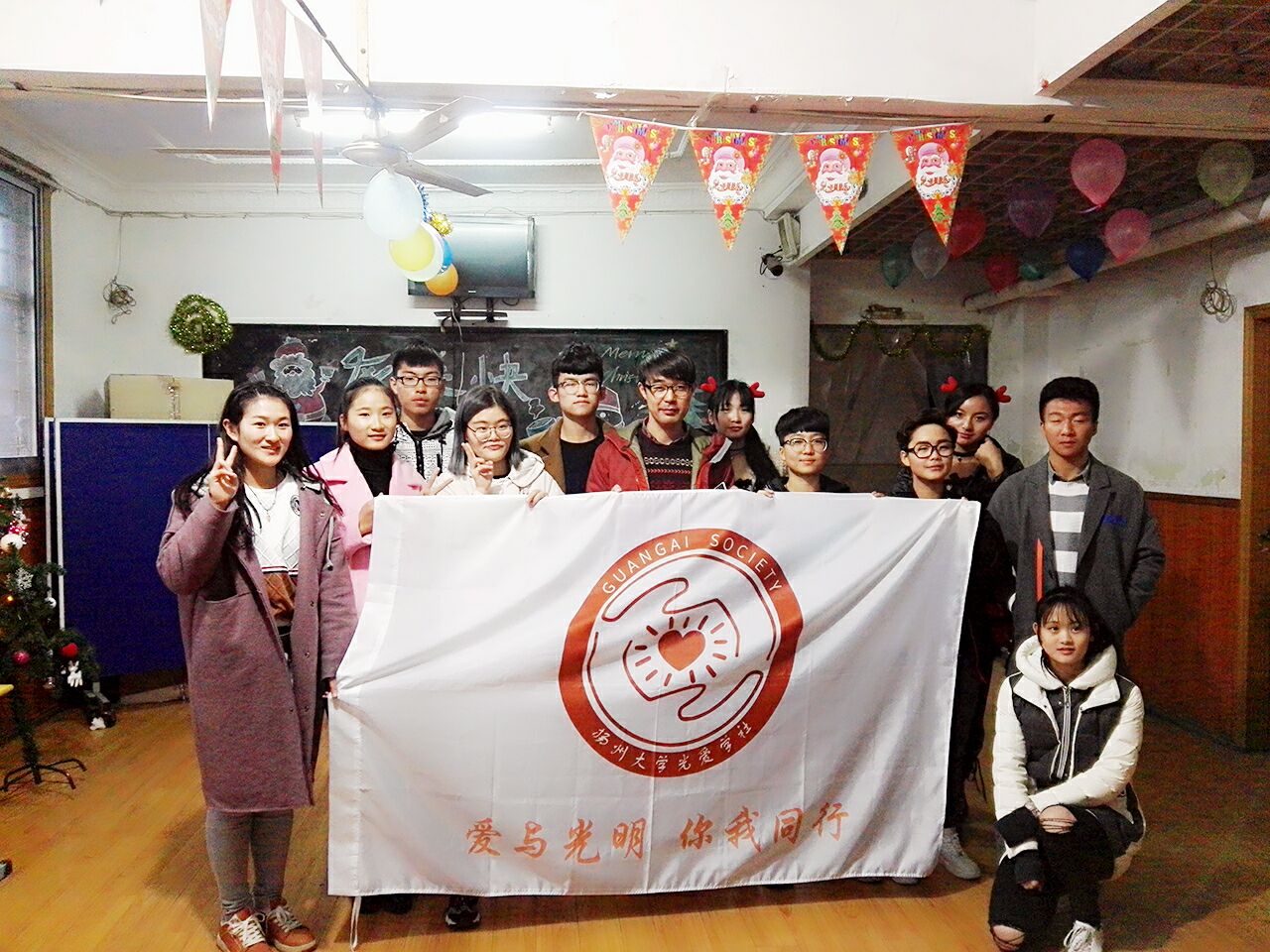 而为了这一天,光爱学社的小伙伴们准备了足足三个星期。从一开始的精心策划、分工安排到后来的各司其职、默契合作,在这样的一个活动里,光爱学社的社团文化也得到了一个质的提高,社团凝聚力变得越来越强。同时,在我校杰出校友何宜玮老师的鼎力相助之下,这一活动得到了其他兄弟学院爱心同学的积极支持,影响力进一步扩大。今天的节目现场更是吸引到广陵学院梁老师(学生们亲切称她为“梁妈”)亲临现场助阵表演,使得现场气氛走向高潮。