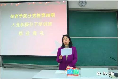 2017年3月7日,体育学院分党校第30期入党积极分子培训班结业典礼在扬子津校区文津楼s215举行。院党委副书记解小青、院团委书记陈志艳、学生第二党支部书记王协强老师出席了活动。