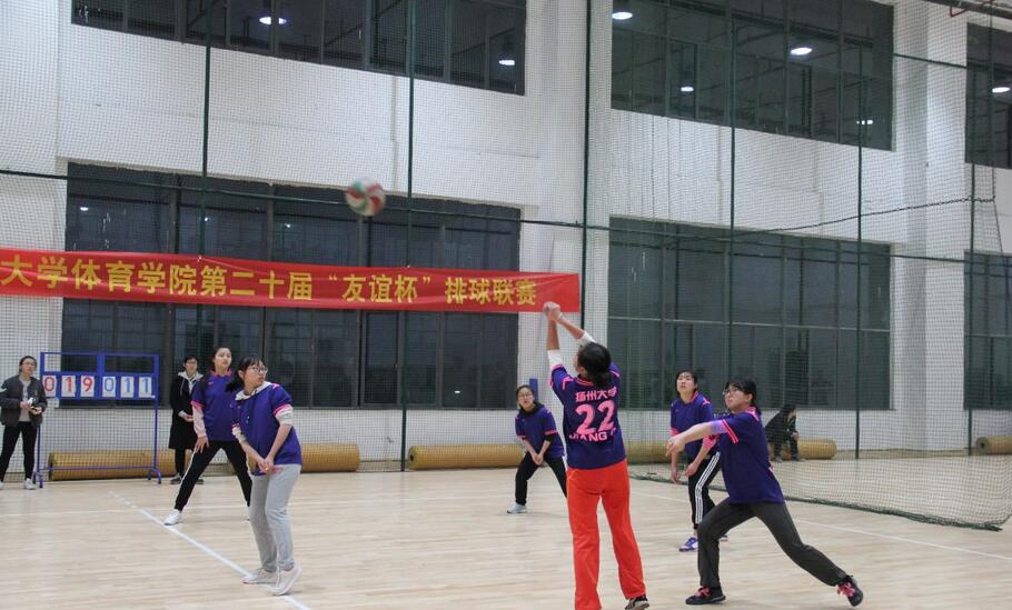 运动是青春热情的展现,拼搏是激情的释放。2017年3月22日下午1:30,扬州大学体育学院在扬子津校区文体馆排球房隆重举行了友谊杯排球联赛的开幕式。院党委副书记解小青、团委书记陈志艳、关工委刘煜老师、高宝龙老师等出席了此次仪式。仪式开始,解书记为开幕式致辞,鼓励同学们要学习中国女排不畏强敌、团结协作、顽强拼搏、永不言弃的精神,并将其运用到平时的学习训练中。最后,她预祝大家在比赛中取得佳绩。