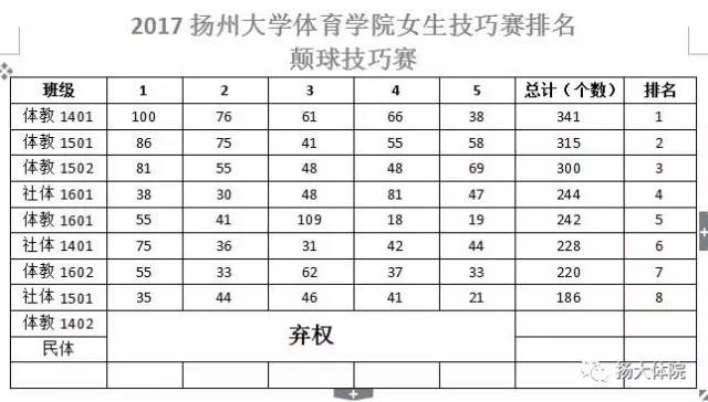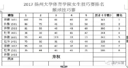2、2017扬州大学体育学院女生技巧赛排名