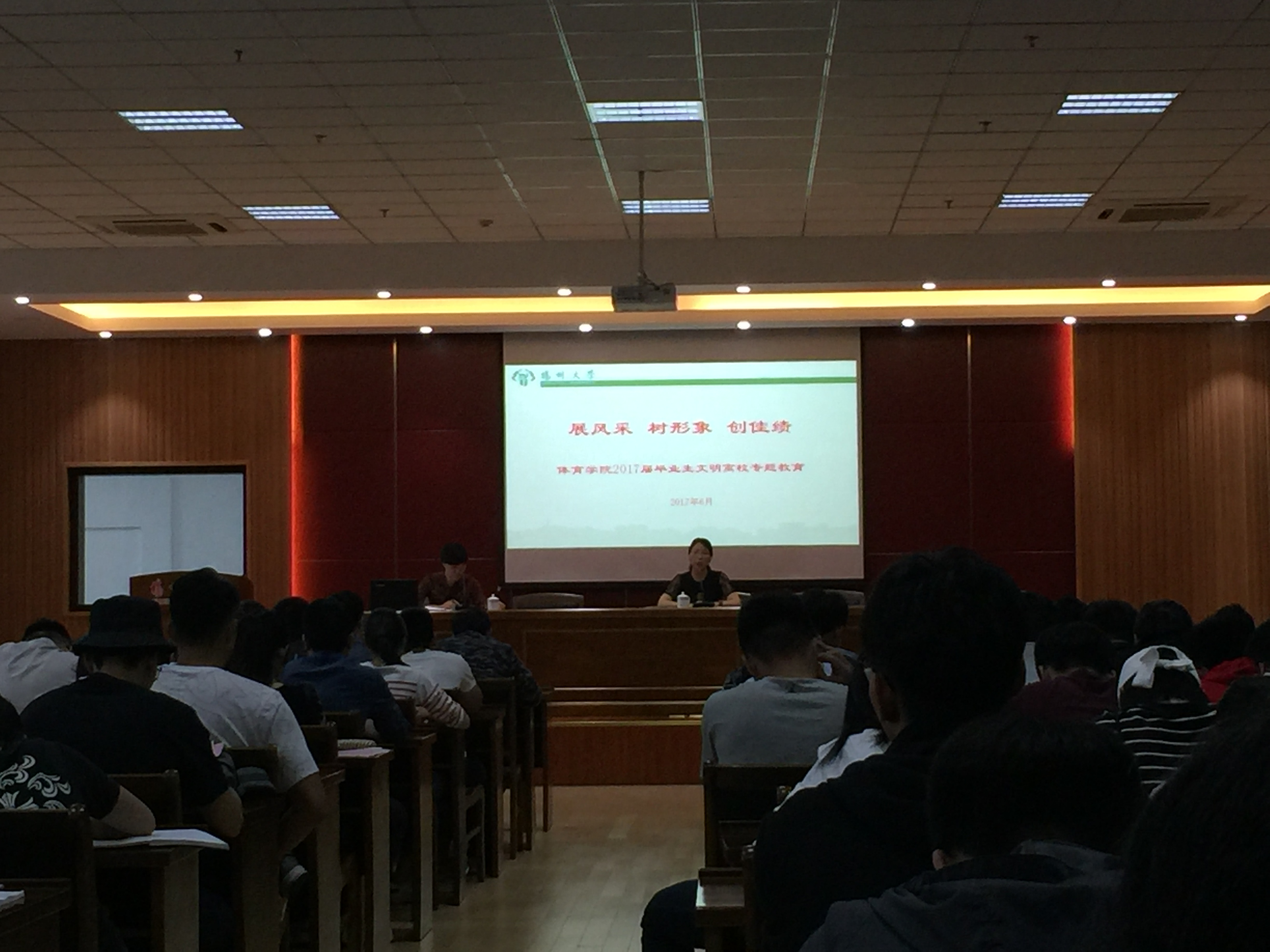 为做好毕业生毕业教育,教育引导学生心怀感恩、文明安全地度过大学最后时光,体育学院于2017年6月6日上午在扬子津文体馆WN302召开了全体2017届毕业生大会。院党委解小青副书记、院团委陈志艳书记、院组织纪检员凌燕主任及全体本科生、研究生毕业班班主任出席了会议。