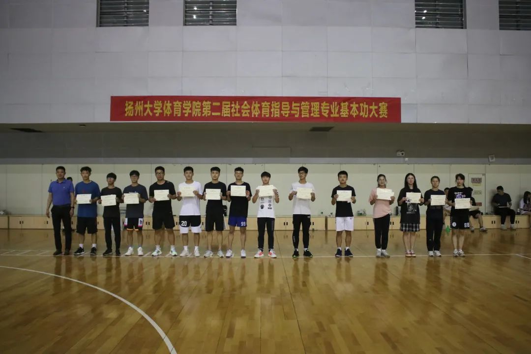 2021年6月19日,扬州大学体育学院第二届社会体育指导与管理专业基本功大赛在体育馆篮球馆激情上演。