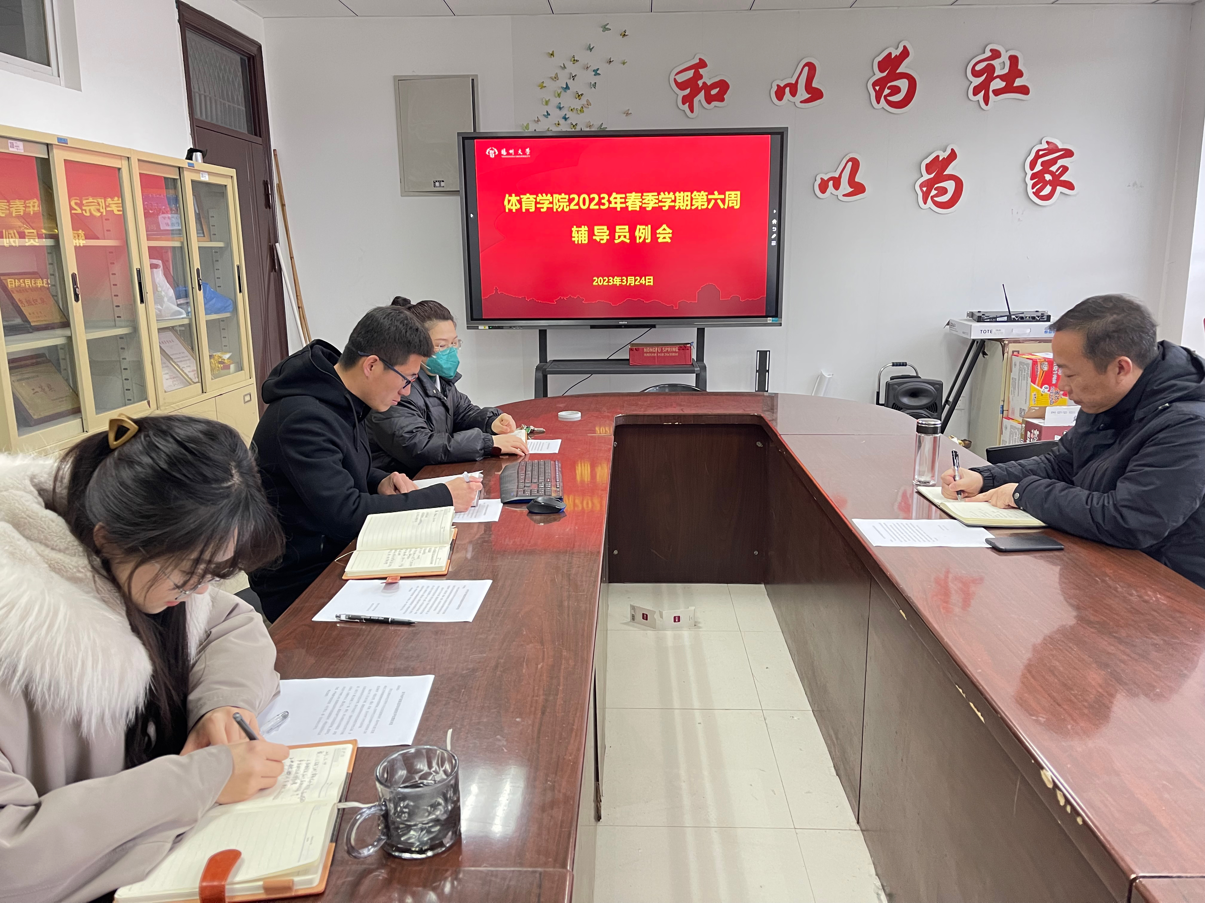 学院辅导员就第六周工作完成情况进行了通报与交流。在2023年春季学期第六周,院团委、学工办主要完成了以下工作:1.2023年度“研本1+1”“一院一品”等项目申报文稿撰写持续推进;2.第七届江苏省体育健康产业创新创业大赛筹备工作顺利完成;3.新修订的学院研究生学业奖学金评定细则进行了通报;4.完成了心理健康教育周系列活动的筹备工作;5.完成了2022年度“身边榜样,前进力量”我的成长故事分享会人选申报;6.确定了2023年度“伯藜之星”的学院候选人;7.完成了第十二届挑战杯的参展路演。