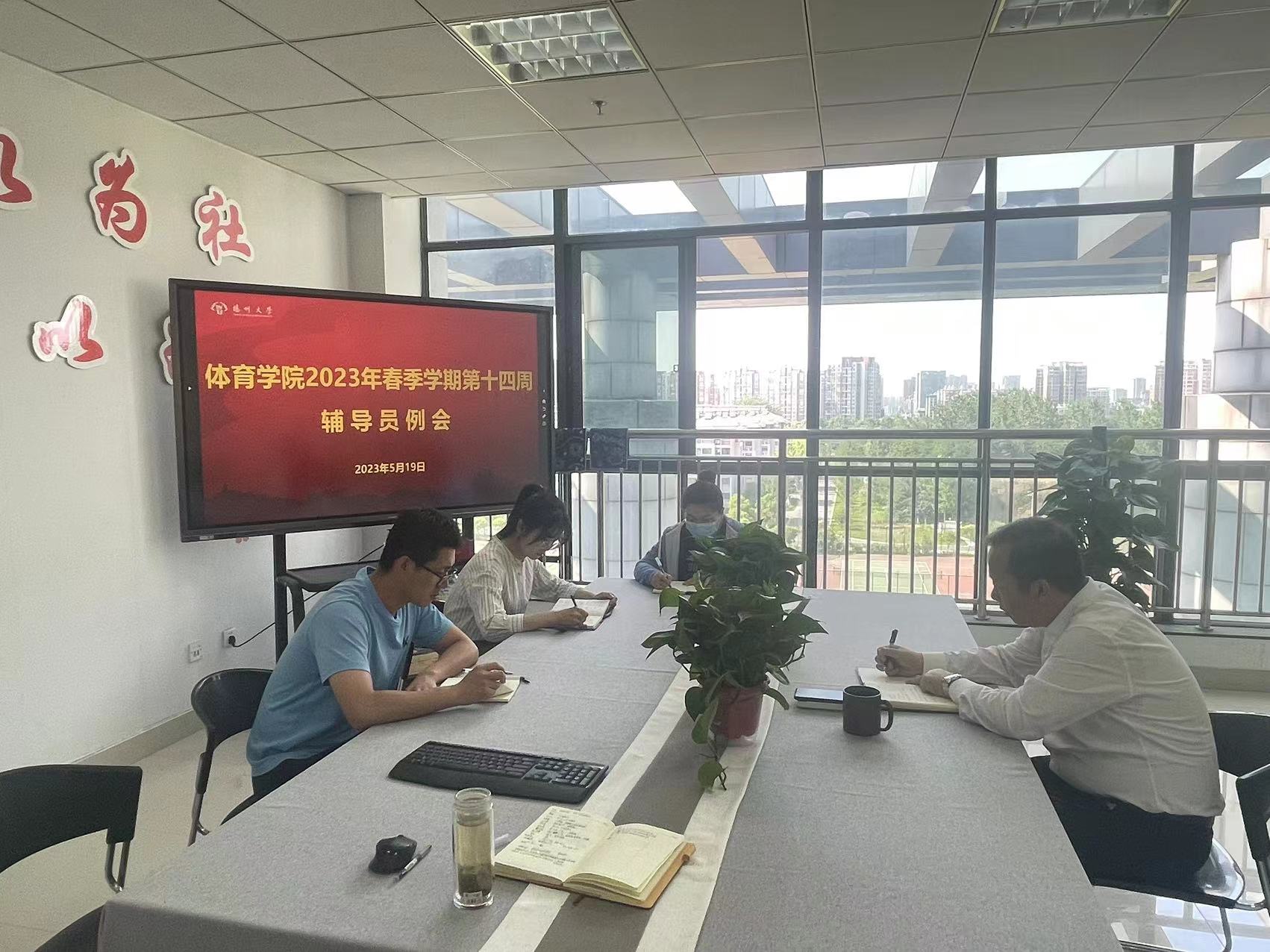 学院辅导员就第十四周工作完成情况进行了通报与交流。在2023年春季学期第十四周,院团委、学工办主要完成了以下工作:1.举行了2023年度团员发展的答辩工作;2.举行了“同心筑梦,勇攀高峰”2023年学院排球赛开幕式;3.完成了扬州大学第十九届学生乒乓球比赛裁判员的招募;4.完成了了2022-2023年扬州大学国际学生学历生奖学金年度申报工作;5.进行了2023年度学院“访企拓岗”行动;6.举办了职业生涯规划系列活动(一)--考研经验分享会;7.编辑并上报了3月至5月学生工作简报。