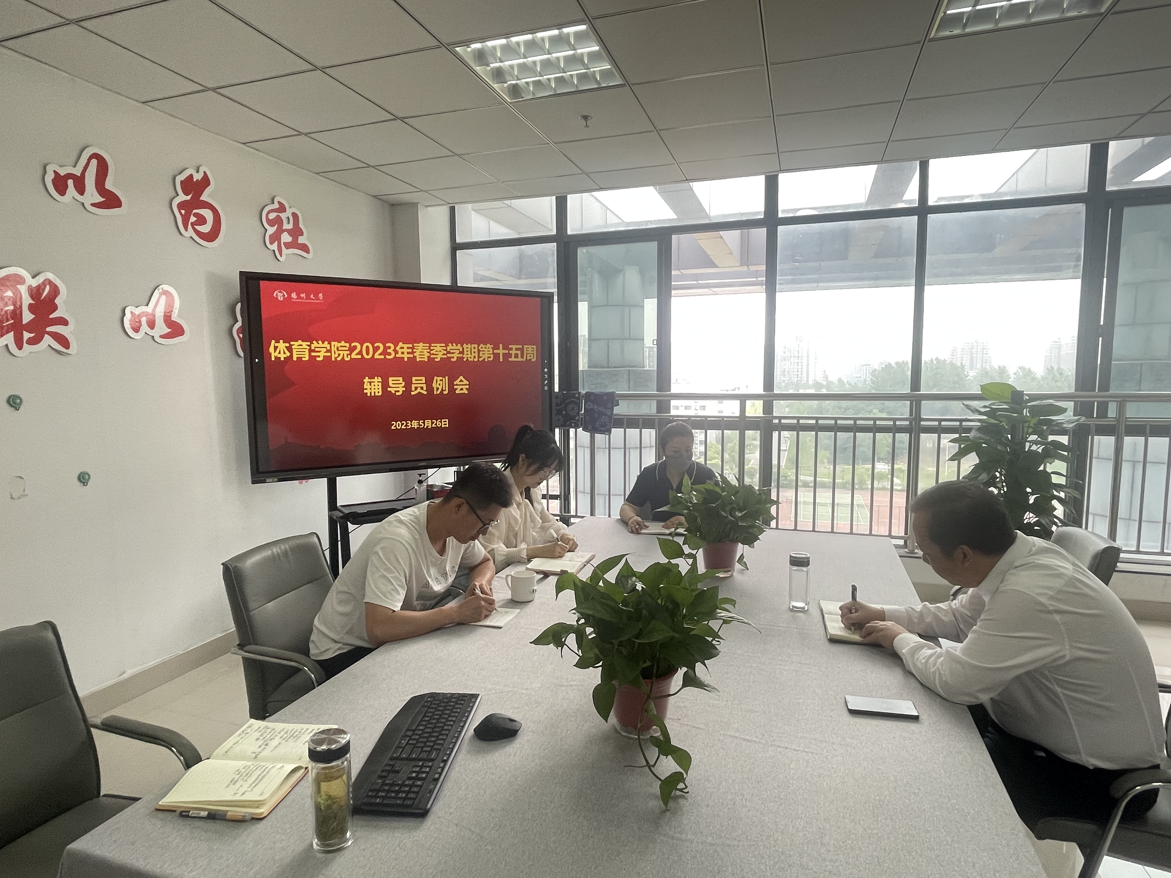 学院辅导员就第十五周工作完成情况进行了通报与交流。在2023年春季学期第十五周,院团委、学工办主要完成了以下工作:1.举行了学院大学生思想政治主题教育宣传系列活动开幕式;2.召开了2023届毕业生就业工作推进会;3.完成了2023年乡村定向班的品德鉴定工作;4.完成了2023年暑期赴海外交流的报名工作;5.开展了2023年度校优秀毕业生的复评工作;6.完成了毕业班学生第二课堂的成绩录入;7.编辑并上报了学院“一生一策”帮扶清单;8.协助完成了“超霸杯”篮球赛闭幕式工作。