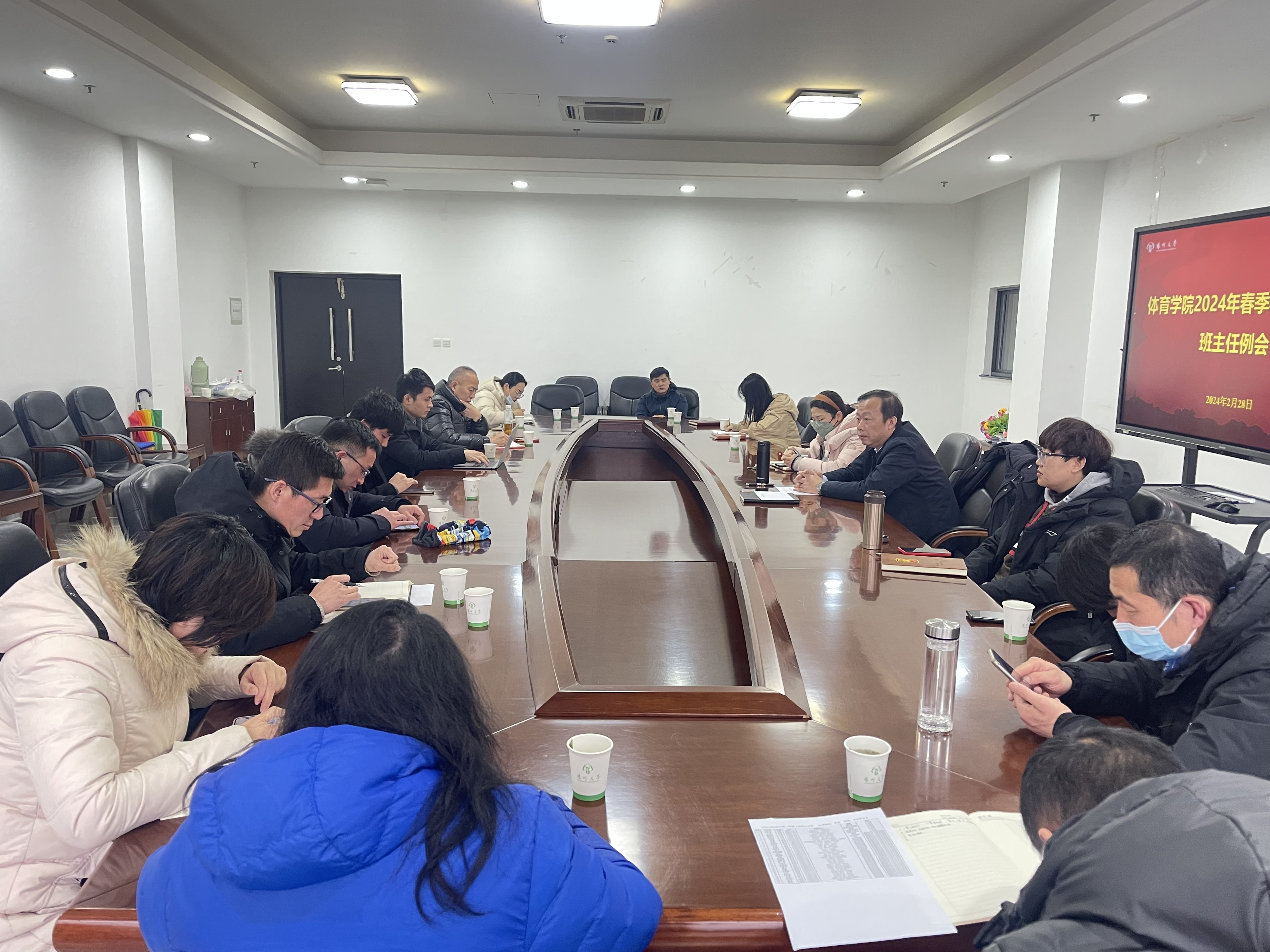 2月28日,学院在文体馆WE201召开了2023-2024学年春季学期第一次班主任例会,院党委副书记蒋义刚出席会议并讲话,院团委书记、学工办主任滕静主持会议。