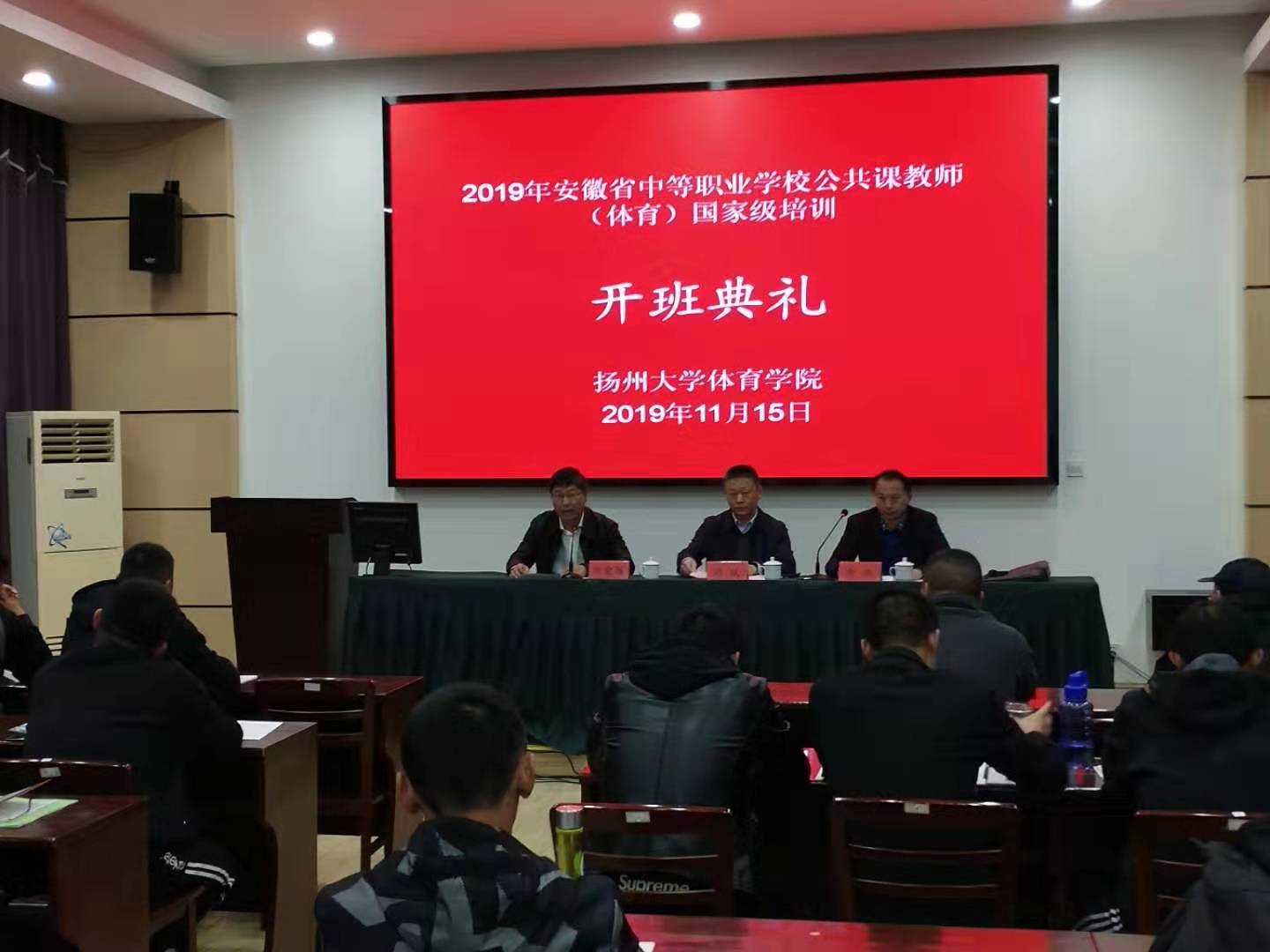 11月15日上午,2019年安徽省中等职业学校公共课教师(体育)国家级培训班在扬州大学体育学院如期举行,扬州大学继续教育学院周斌院长,扬州大学体育学院陈爱国院长、余洪副院长出席了本次培训班的开班典礼。余洪副院长主持本次开班典礼。