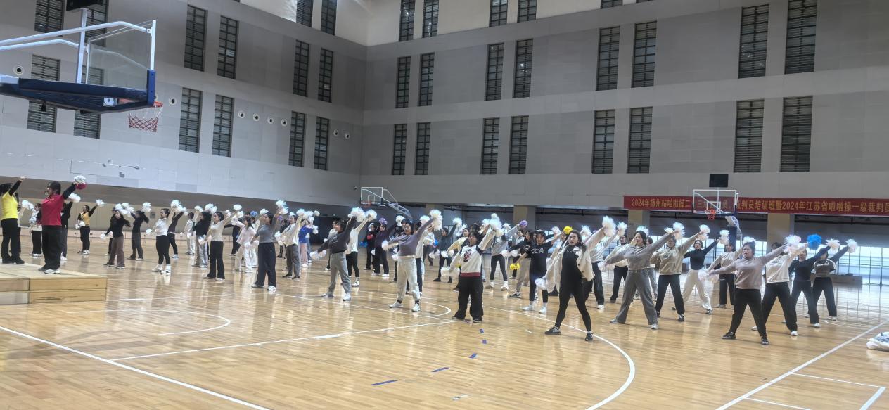 2024年11月30日至12月1日,“人才强国·未来有你”2024年扬州站啦啦操二、三级教练员、裁判员培训班暨2024年江苏省啦啦操一级裁判员培训班”在扬州大学体育学院成功举办。本次培训吸引了全省范围内130多名学员参与,其中扬州大学学员20多名。