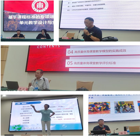 专家引领,智慧风暴:作为体育教育领域权威专家,季浏教授以 “高质量体育课堂教学模型与新课标落地” 为主题授课,剖析传统体育课 “不出汗、无比赛、技能碎片化” 痛点,解读中国健康体育课程新模式 汪小赞教授,传授“以目标引领内容”才有可能百花齐放,她以自己课堂实践给老师们讲解,课程标准的实施过程中,不要固化思维,也可以打破原有的技能顺序,以赛促练,注重教学应用的情景化、结构化,彻底打破了我们以往的固化思维。潘邵伟教授仅用一根跳绳,便生动诠释了体育的无限可能,让学员们深刻的理解:要让体育课好玩一点,才能真正吸引学生,让孩子们的生命力更旺盛,更张扬,强调体育课的高效教学。深耕一线 40 年的陈晓莺教授,她灵动刚劲,尽显武术家精气神,其摒弃空洞理论,用“项目迁移法”现场教“仆步抡拍”,借用“纸片落地”激发学生积极“快速摆臂”等现场案例,让抽象方法直观可学,用让学员悟“教学创新在细节”。学员全程投入,结束后掌声久久不停,课后围堵请教,直呼“听不够,学不尽”。茶余饭后,大家也会经常她的讨论教学智慧。
