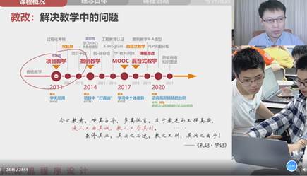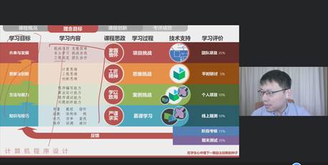 培训会上,李骏扬老师通过自己在教学中的实际案例就混合教学课程概况、的理念与目标、混合教学模式的创新以及考评成效等方面进行了深入浅出的讲解。他从信息时代学生特点和新时代教学要求介绍了教学改革的必要性,用大量图片配以视频阐述了传统课堂教学与混合式教学的不同教学效果,详细讲解了在信息化条件下教师应如何重构课程,混合式教学线上和线下如何教学设计等。