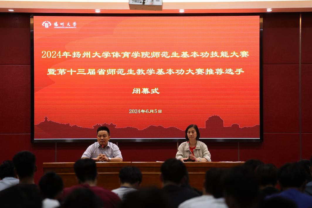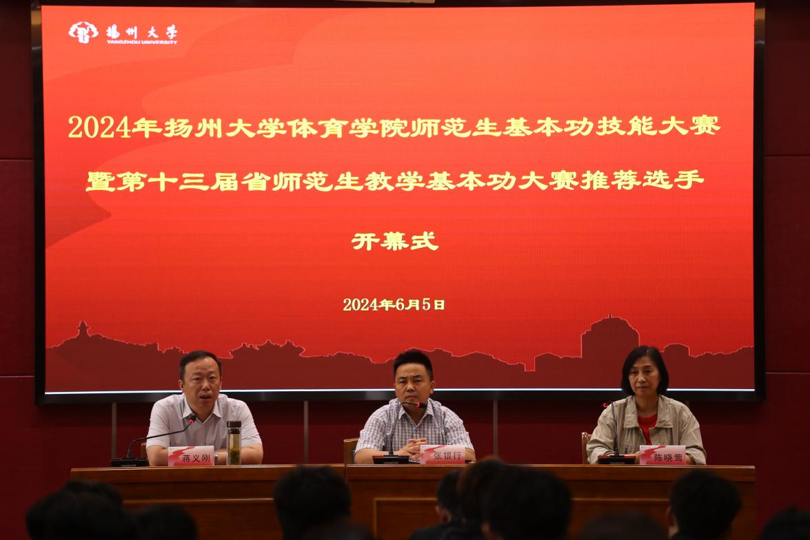 为激励、强化体育师范生基本技能,发挥获奖选手先锋模范作用,进而推荐参加第十三届江苏省师范生教学基本功大赛的优秀选手。在扬州大学体育学院全体院领导的关心支持下,2024年6月5日下午13:30,学院于文体馆WN302举行了“扬州大学体育学院师范生基本功技能大赛暨第十三届省师范生教学基本功大赛推荐选手”活动开幕式。出席此次活动的有体育学院党委副书记蒋义刚、陈晓莺老师,校外专家孔庆祥老师、张俊老师,班主任高宝龙老师、王协强老师等。活动由副院长张银行主持,体育教育专业2021级全体参赛学生参加了此次活动。