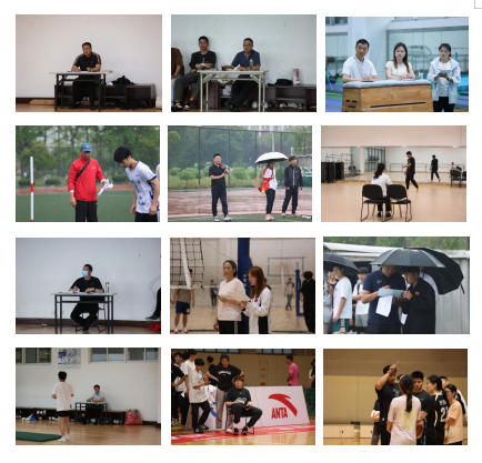值得一提的是,本次大赛期间不仅天降大雨,又适逢我院篮球馆举行全国女子篮球赛,给各项目有序进行带来了巨大挑战。但各项目评委坚守岗位,组委会及时调整比赛方案,充分发扬体育人不怕苦、不惧难、勇斗争的精神。最终,比赛按既定计划如期举行。